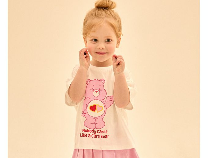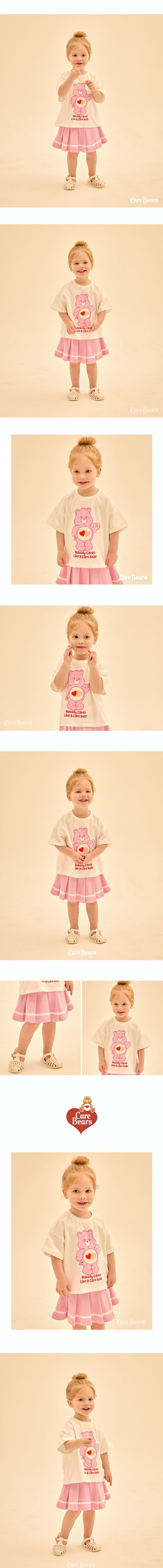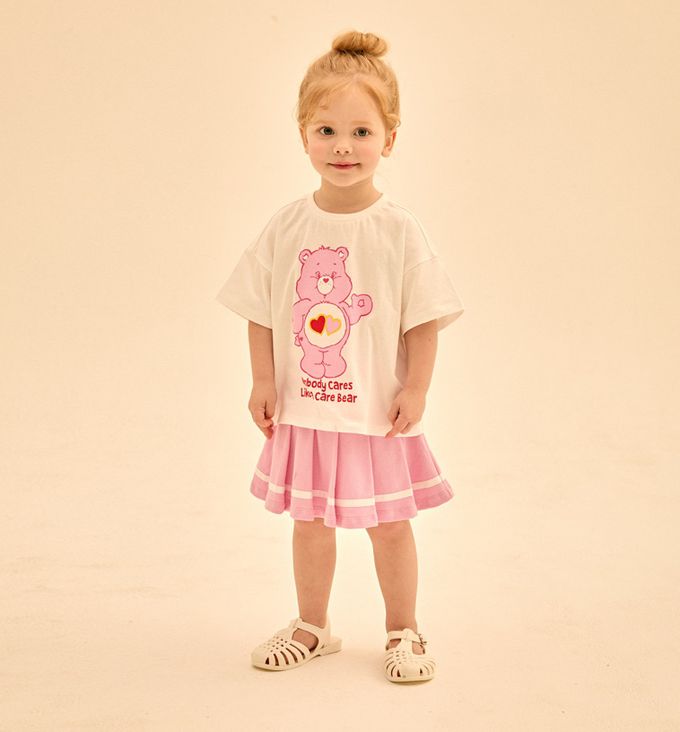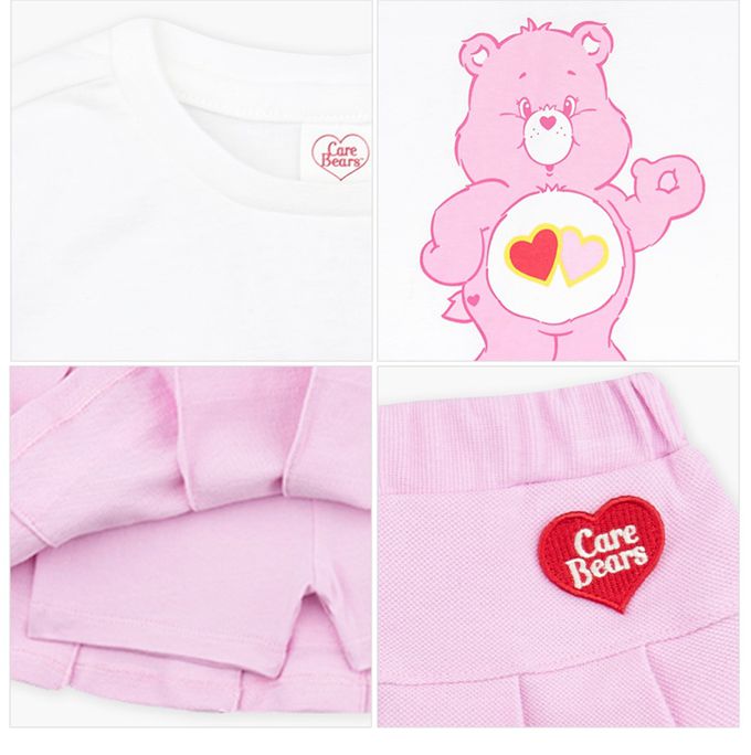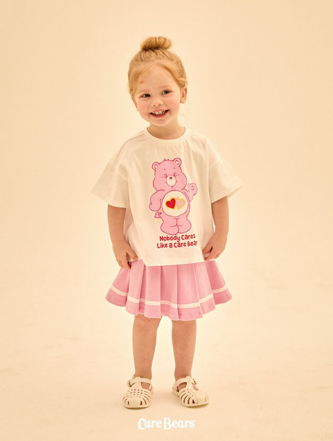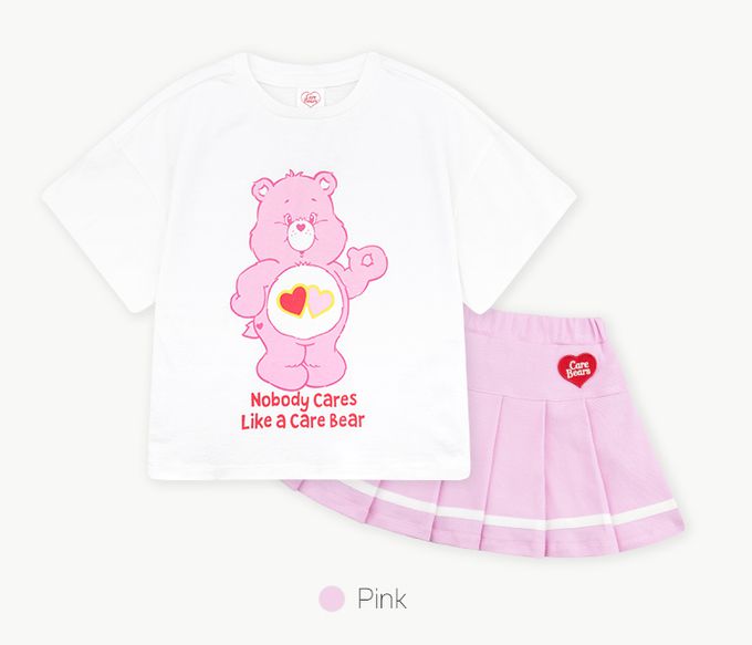 韓國 Care Bears - 聯名款愛心熊百褶褲裙套裝-白X粉