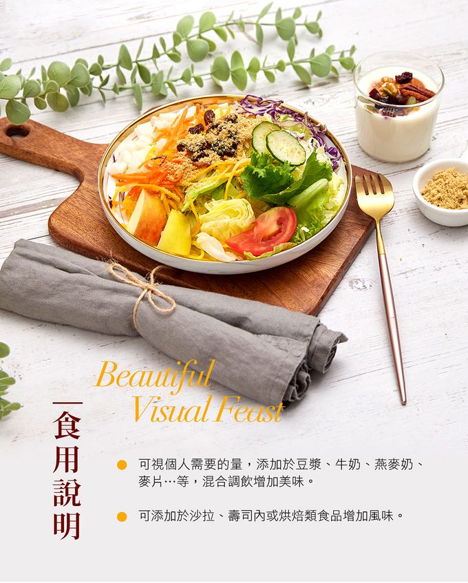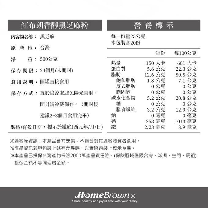 過敏原:本產品含有芝麻、麩質穀物,不適合對其過敏體質者食用