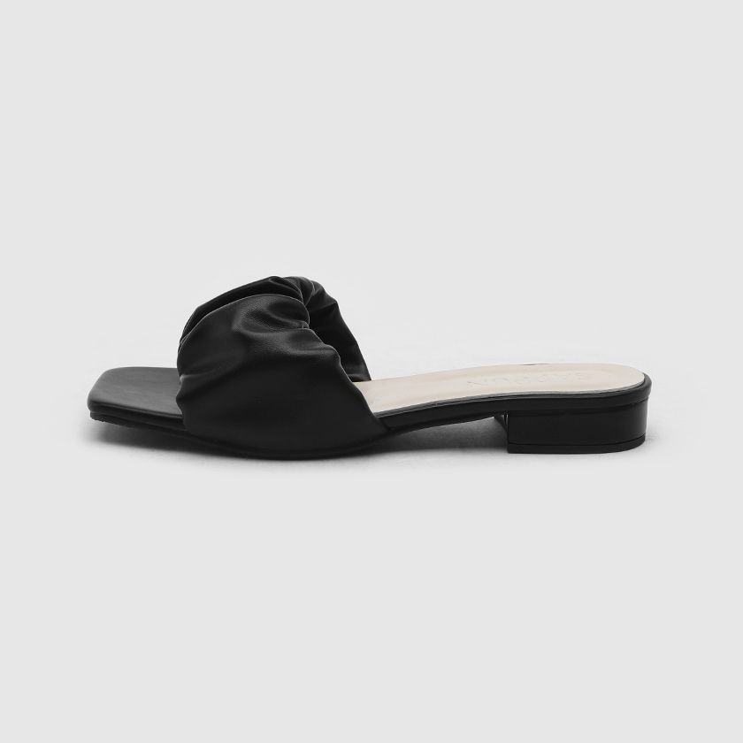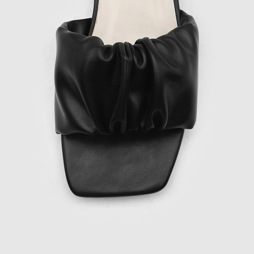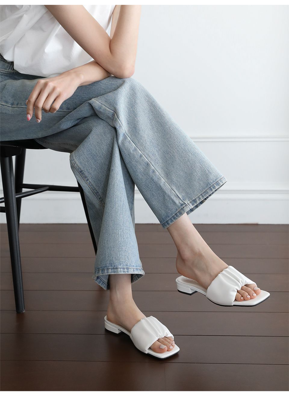 韓國 SAPPUN - 皺摺寬帶矮跟拖鞋-淺米杏