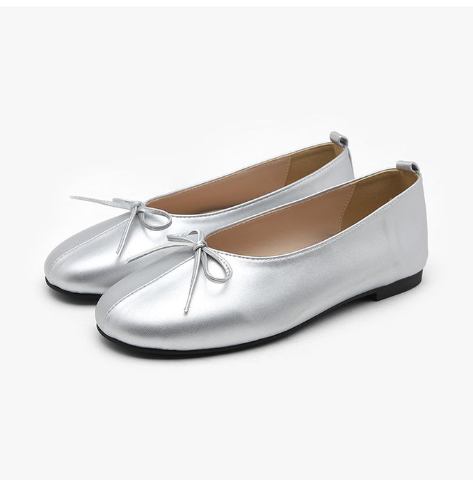韓國 SAPPUN - 皮革軟底包頭娃娃鞋-銀