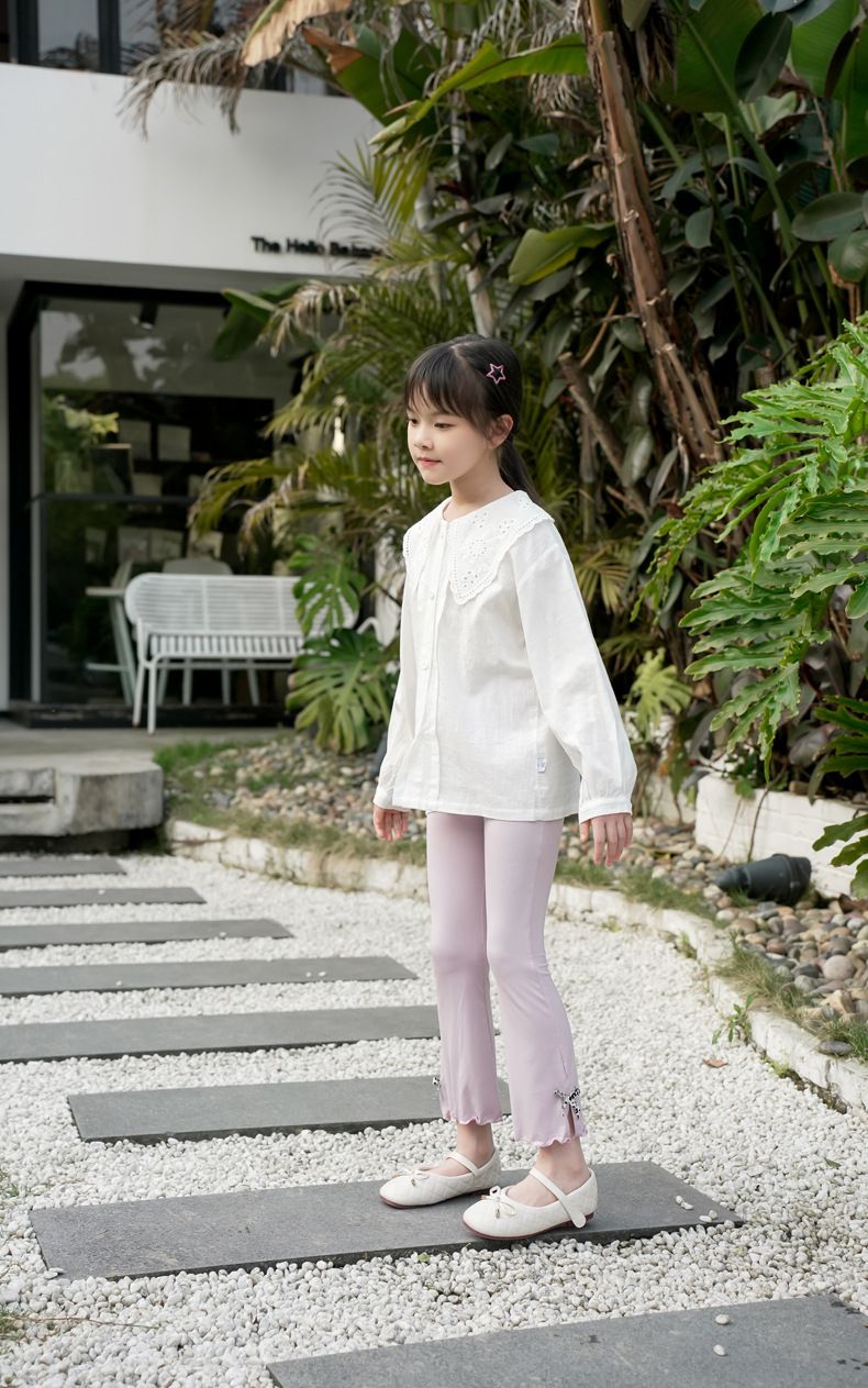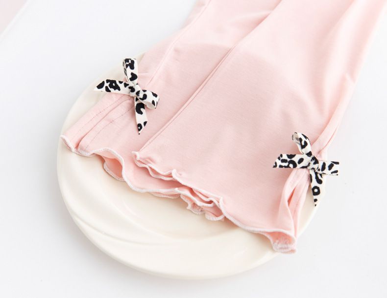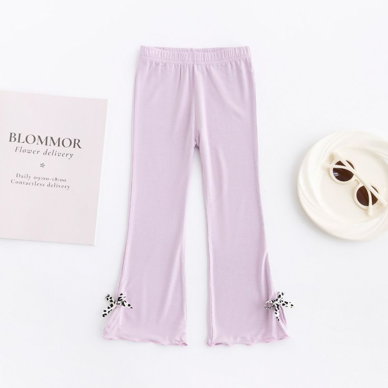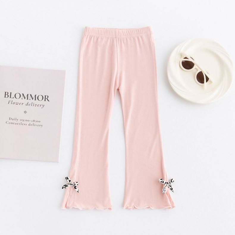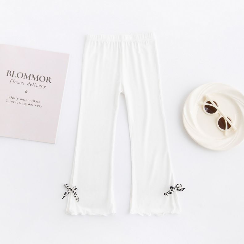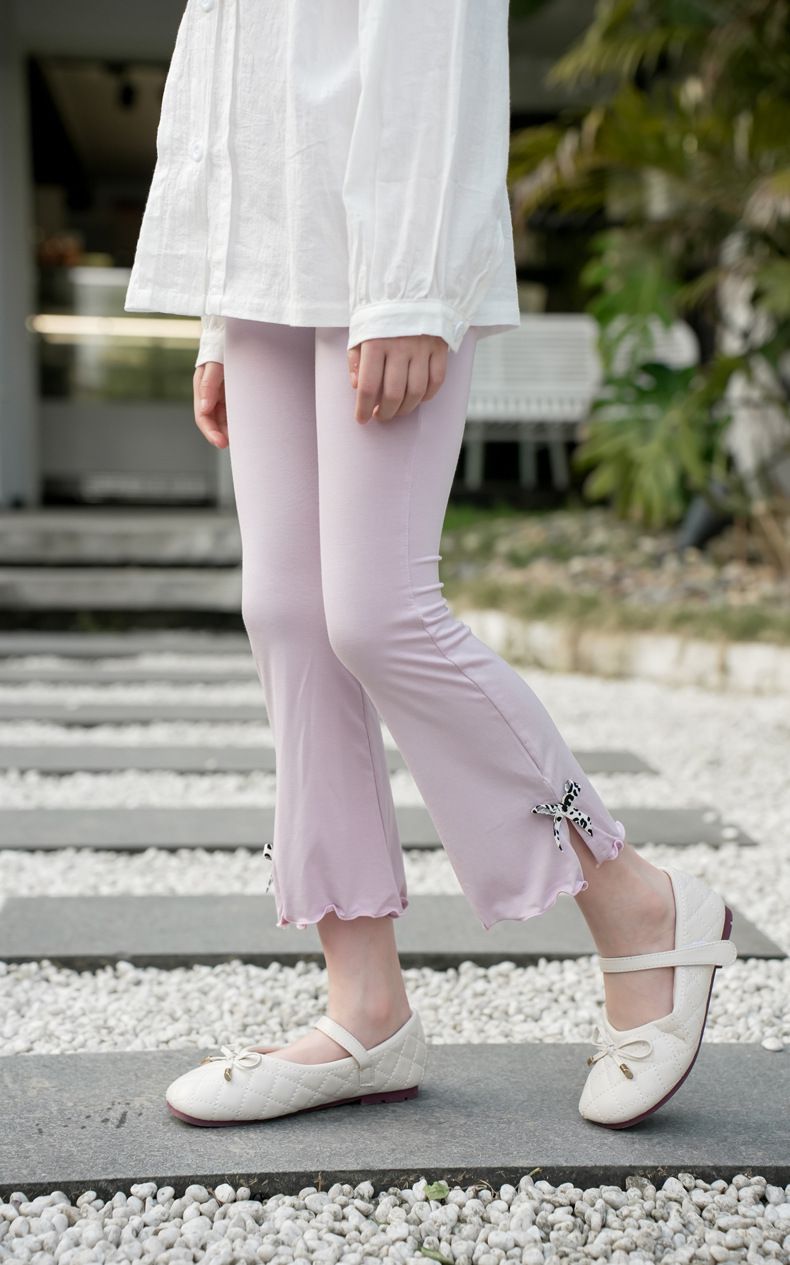褲管微開衩,木耳邊搭配蝴蝶結,甜美可愛