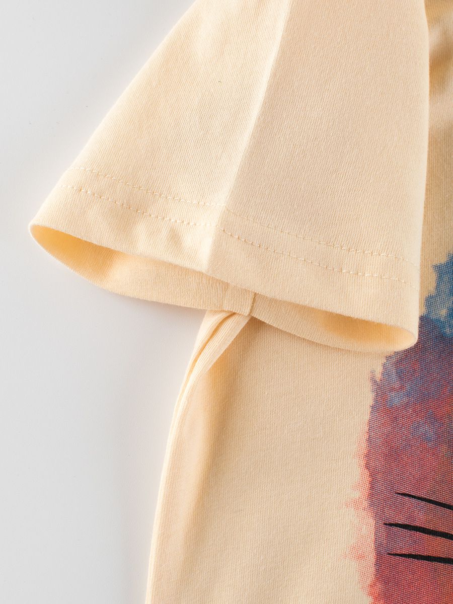 純棉短袖上衣-暈染獅子-米杏