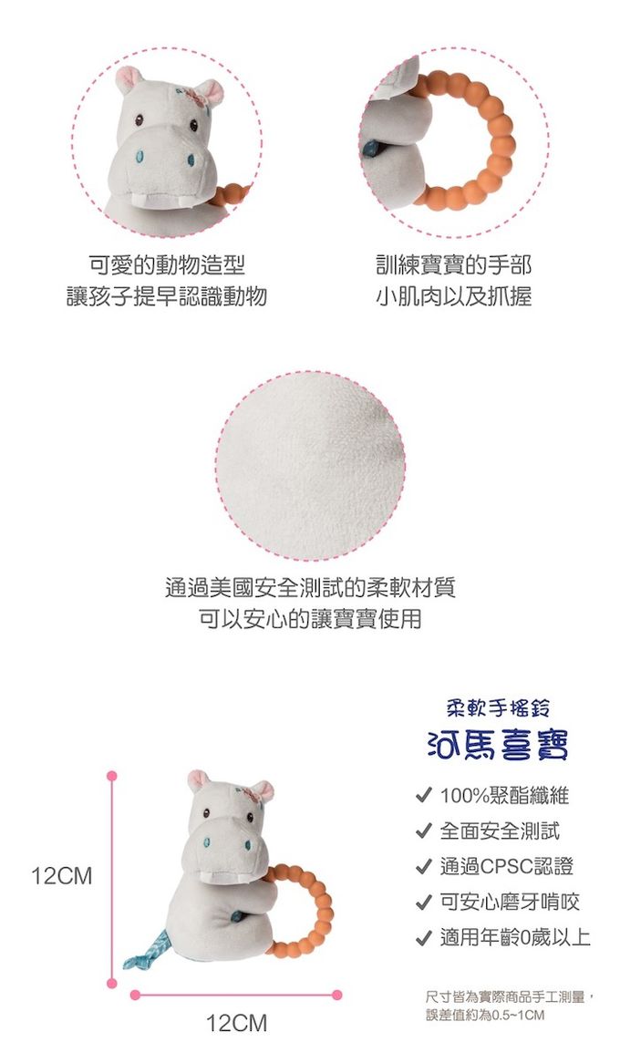 ●溫柔的河馬喜寶,擁有柔軟的心思,喜歡靜靜地包覆著寶寶的每個時刻,柔柔軟軟的身體讓寶貝一夜好眠,溫柔是喜寶最引以為傲的特質