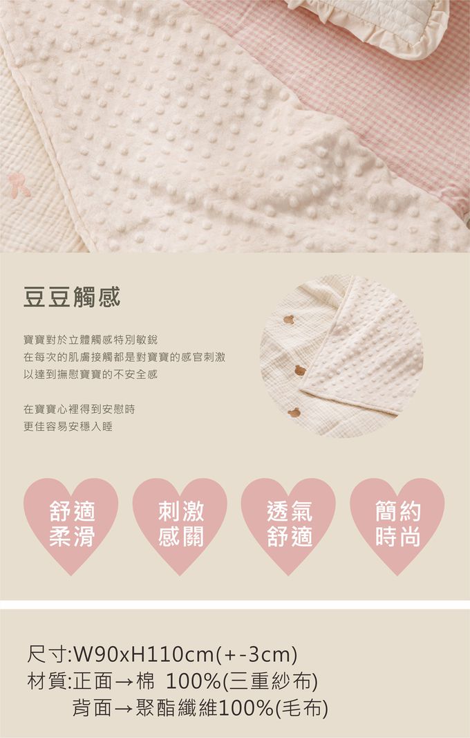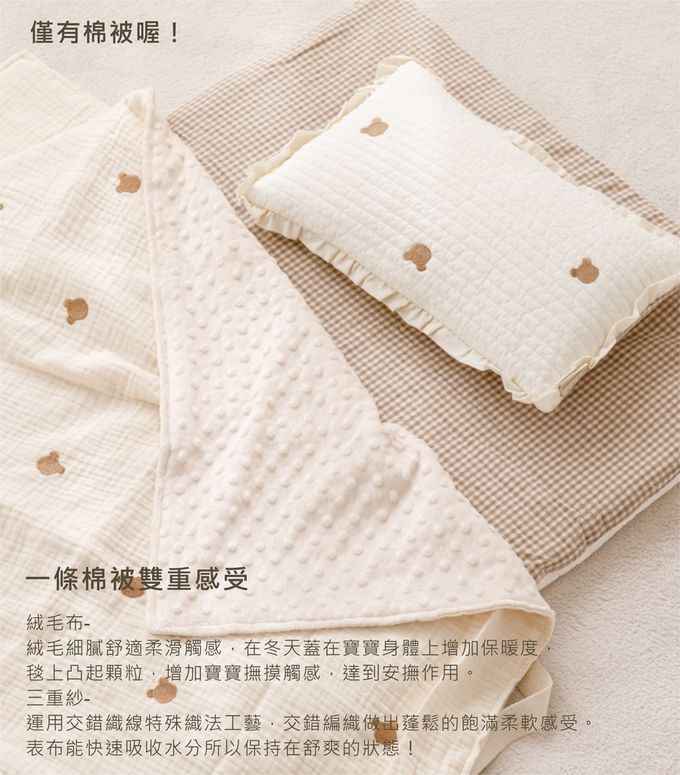 材質:材質:正面→棉 100%(三重紗布) 背面→聚酯纖維100%(毛布)