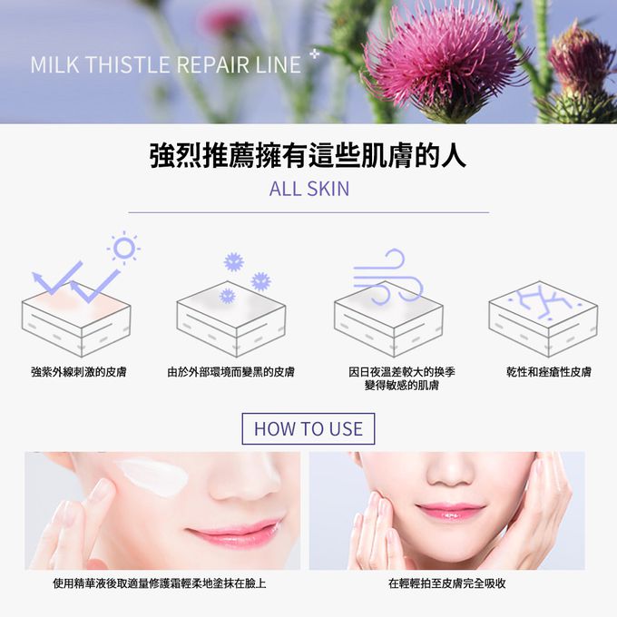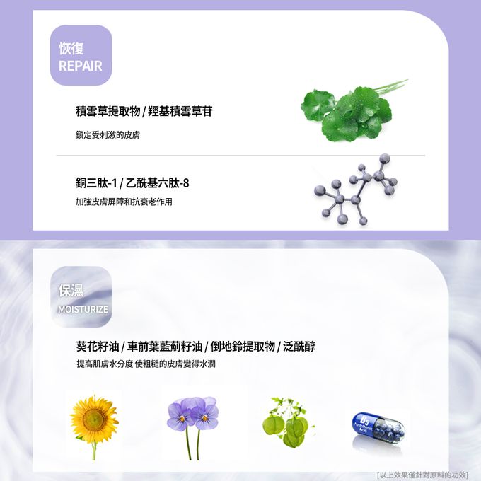 💡葵花籽油、車前葉藍薊籽油、倒地鈴、泛醇(維他命原B5)