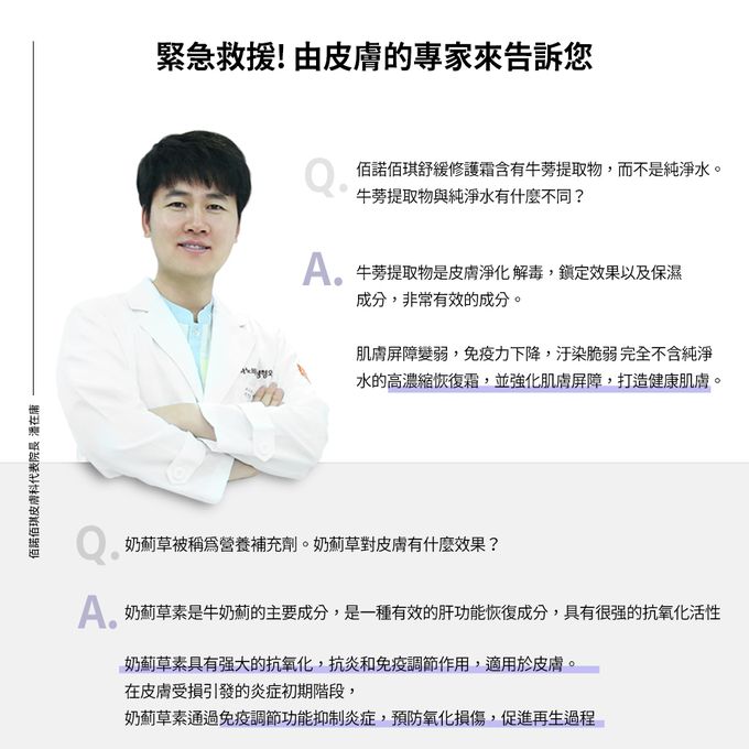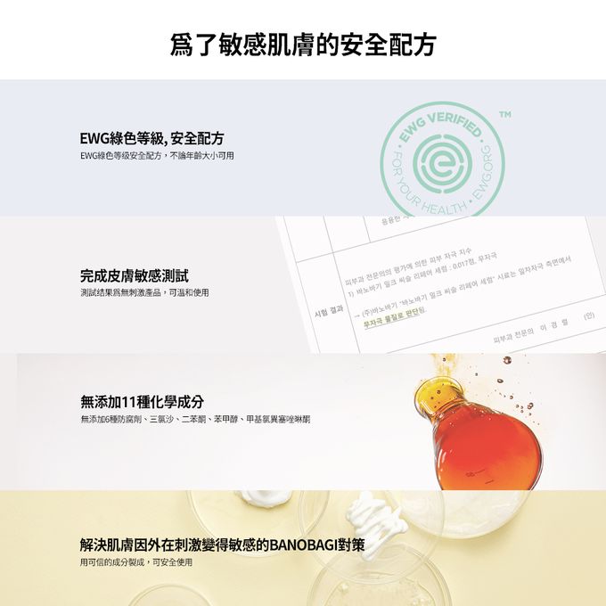 BANONAGI 精心打造,不含純淨水而是使用牛蒡萃取物幫助肌膚緩解炎症,重點精華原料,幫助肌膚由內而外調理,可有效對抗由外部因素而造成的肌膚受損,每項原料都肩負著一到道防線,為您打造最全面的防護網!