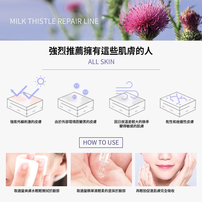 💡葵花籽油、車前葉藍薊籽油、倒地鈴、泛醇(維他命原B5)