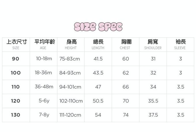 尺寸從 90-130cm 都有,大小孩和小寶貝都可以穿!