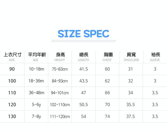 尺寸從 90-130cm 都有,大小孩和小寶貝都可以穿!