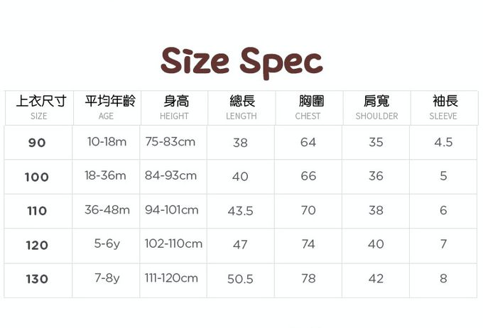 尺寸從 90-130cm 都有,大小孩和小寶貝都可以穿!