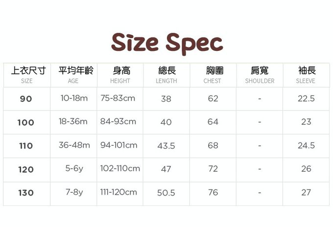 尺寸從 90-130cm 都有,大小孩和小寶貝都可以穿!