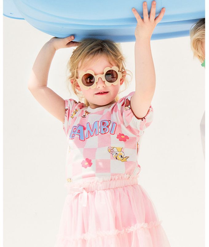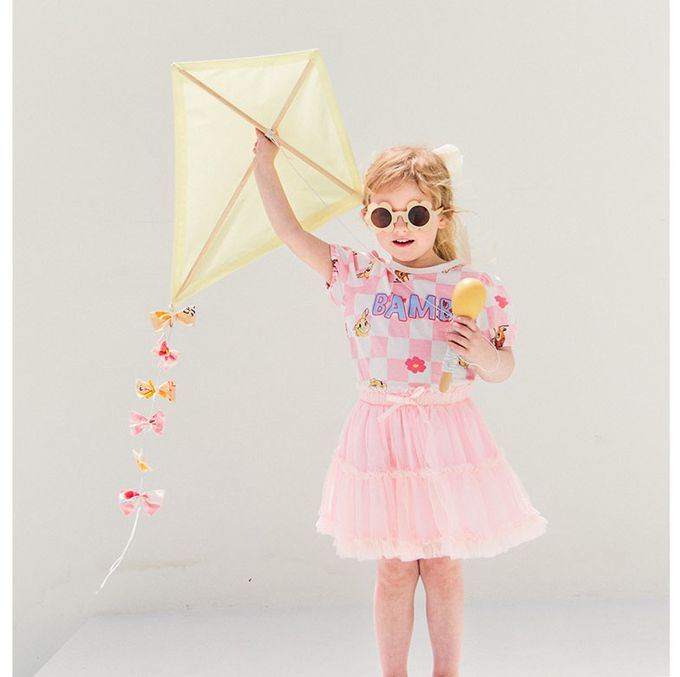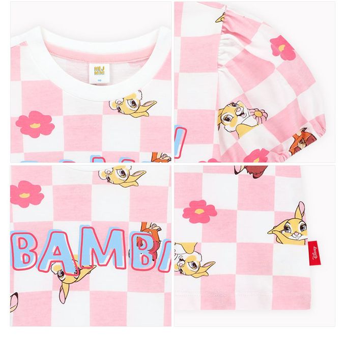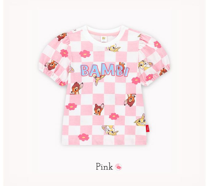 韓國 HEJMINI - (聯名款)卡通人物斑比方塊格短袖上衣-粉