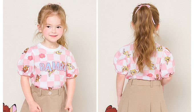 • 品名:(聯名款)卡通人物斑比方塊格短袖上衣