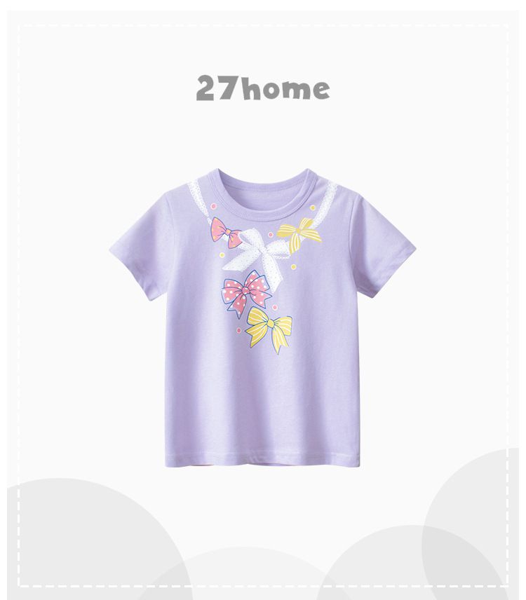 純棉短袖上衣-甜美蝴蝶結-紫色
