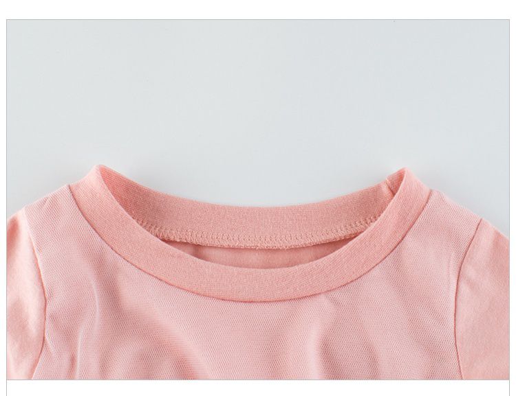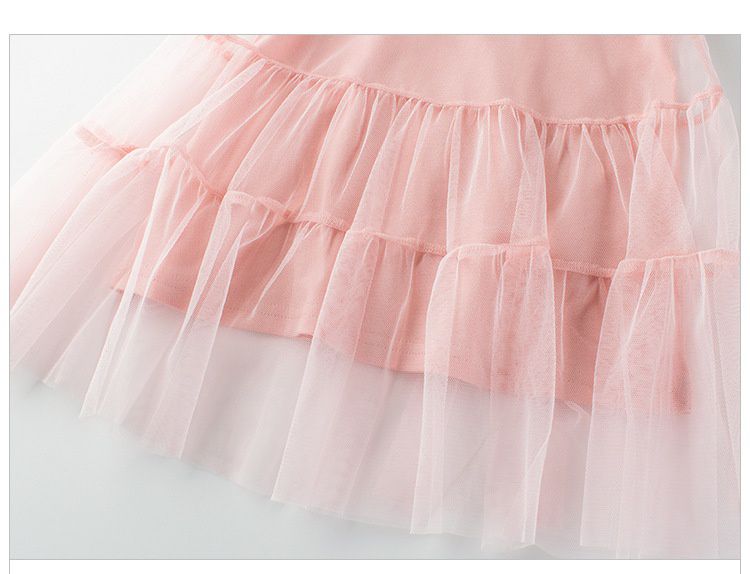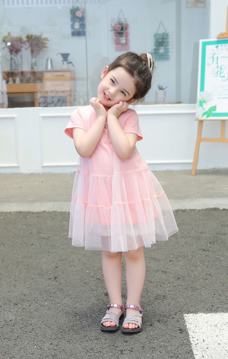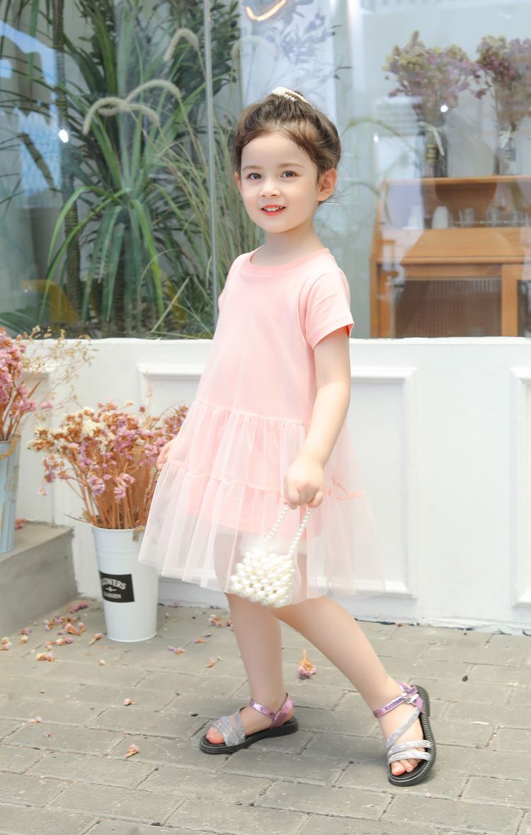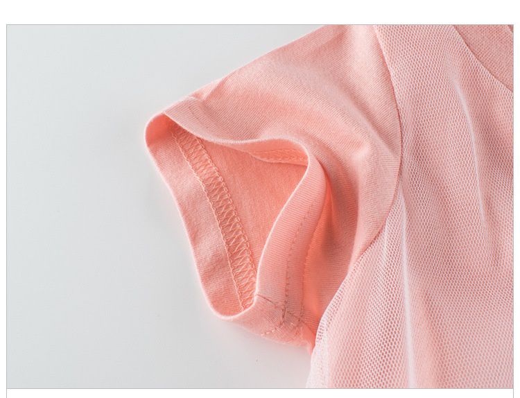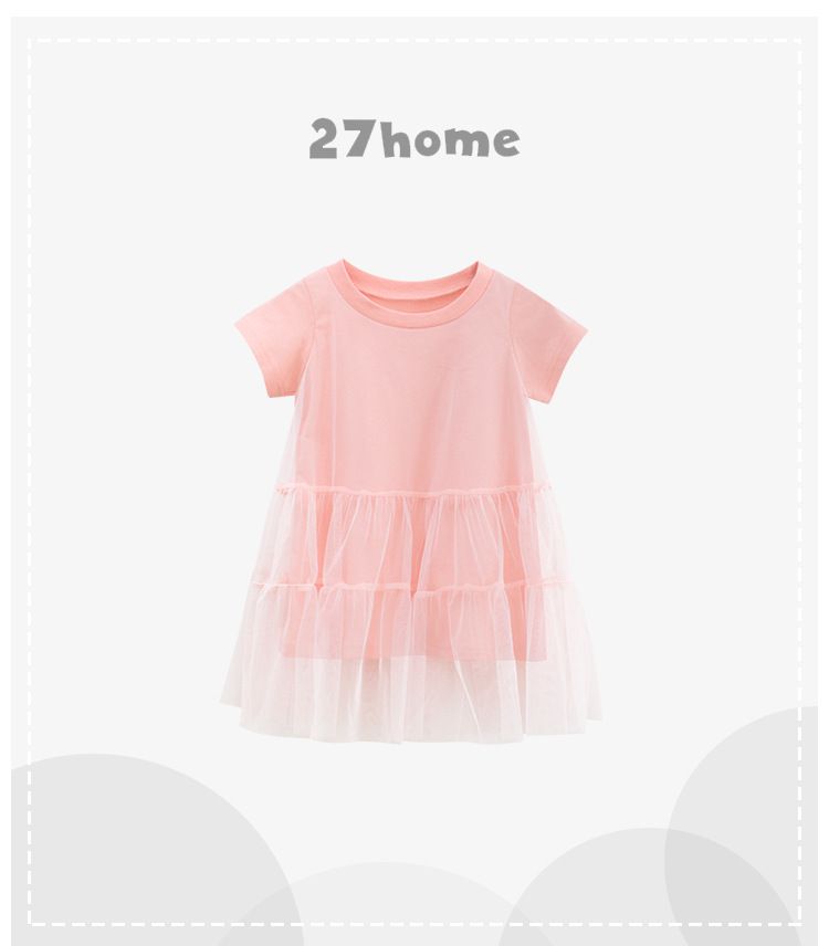 純棉網紗拼接短袖連身裙-粉色