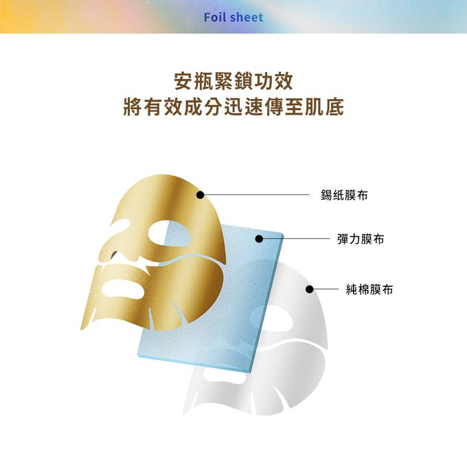 2. 打開包裝取出上下2張面膜,將錫紙面朝外敷於臉上。