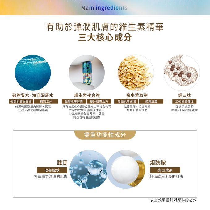 多種維生素複合物具有非常優秀的抗氧化能力,可有效預防撫紋、老化,