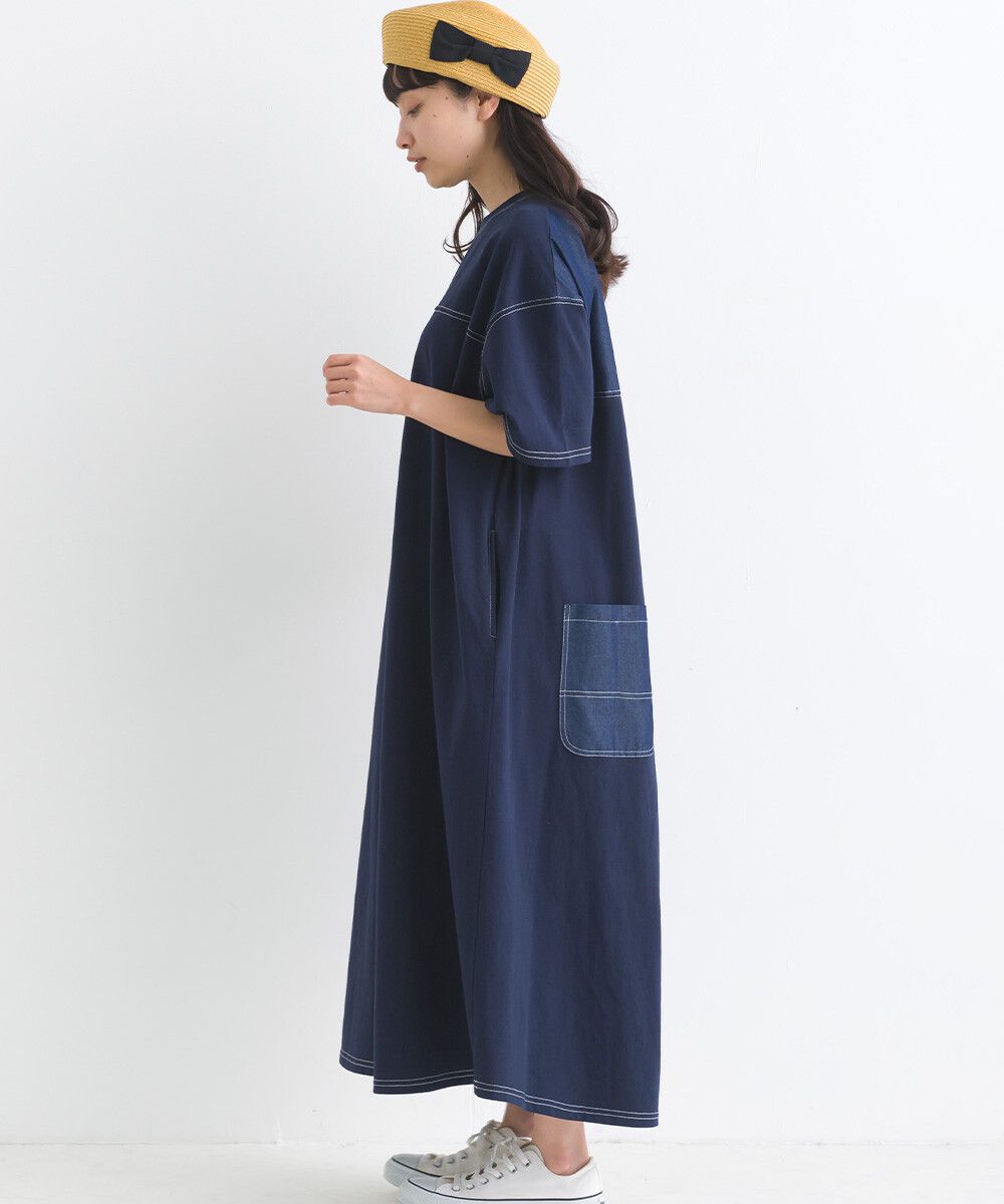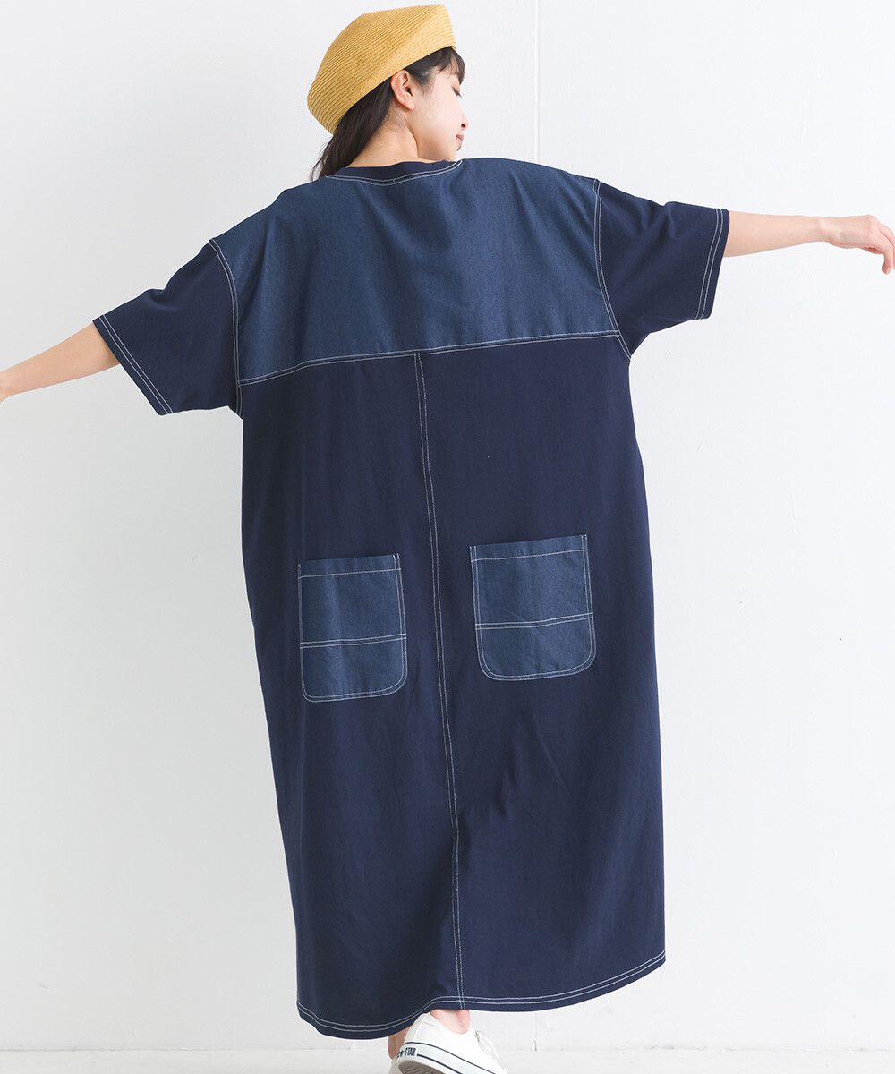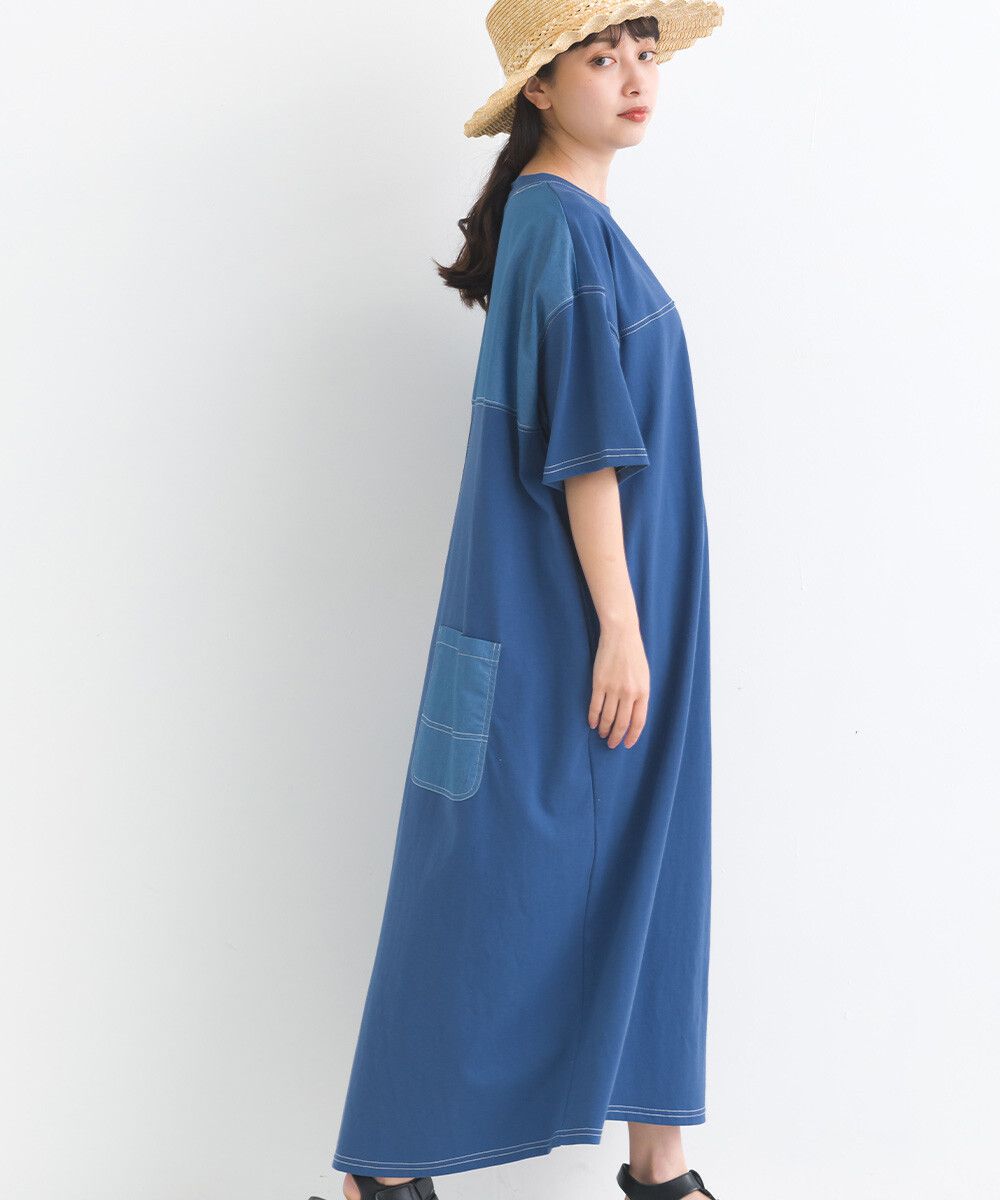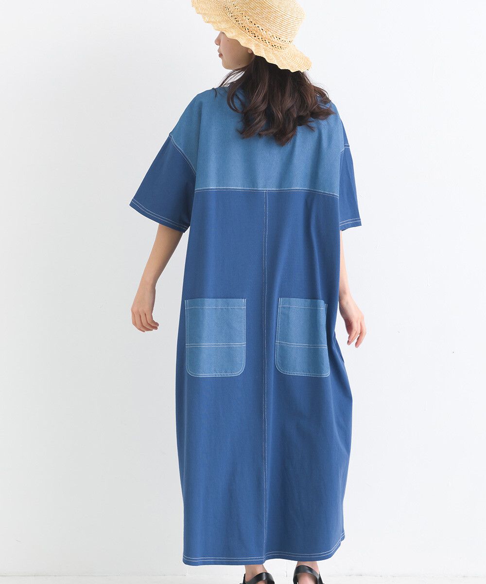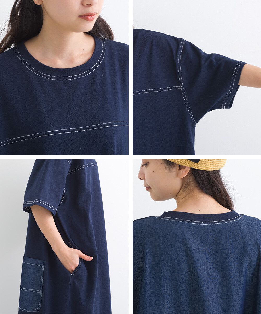 16支厚磅混丹寧短袖洋裝