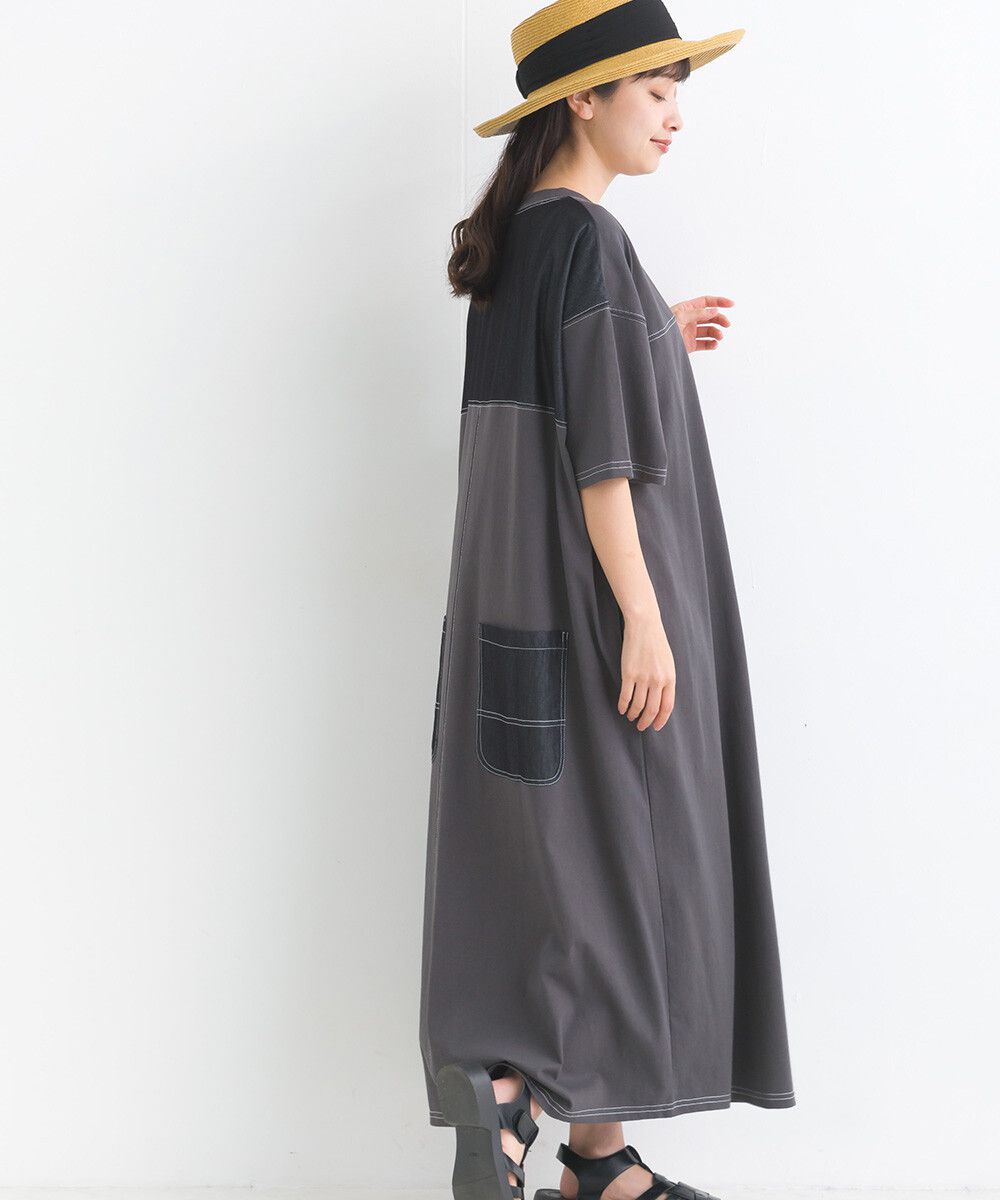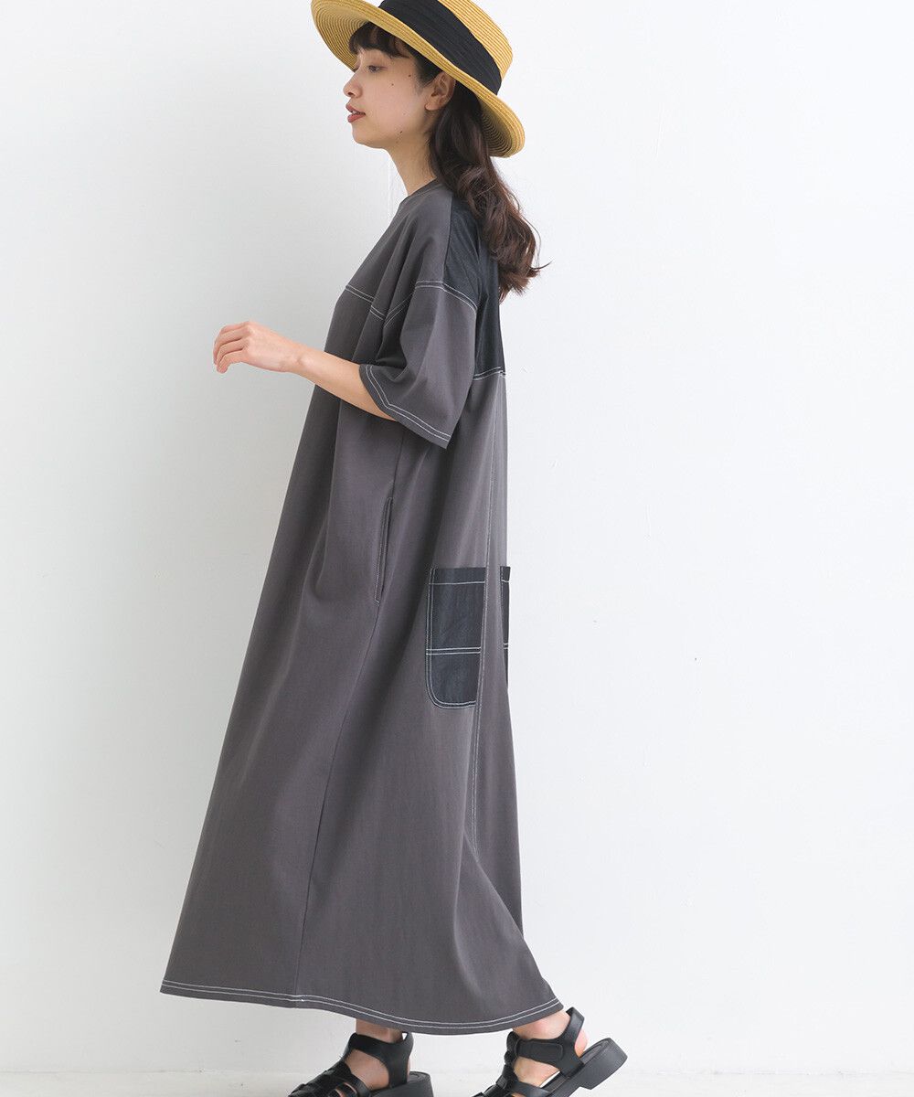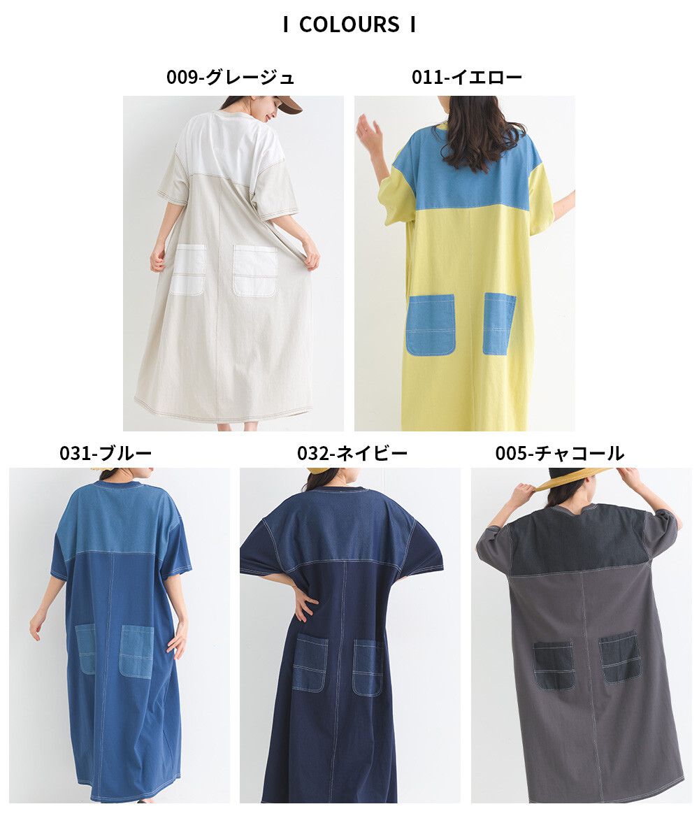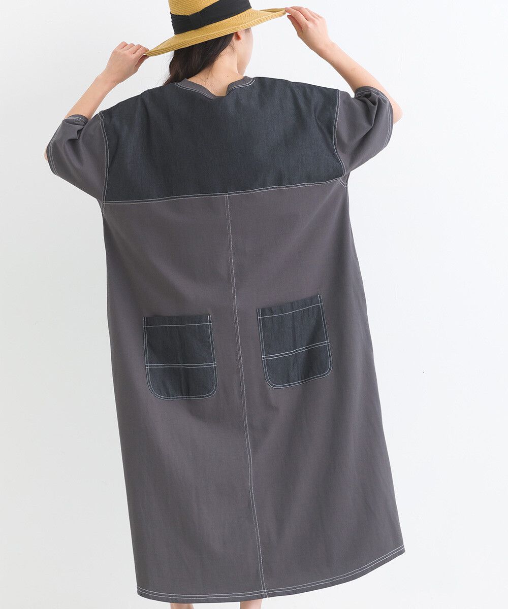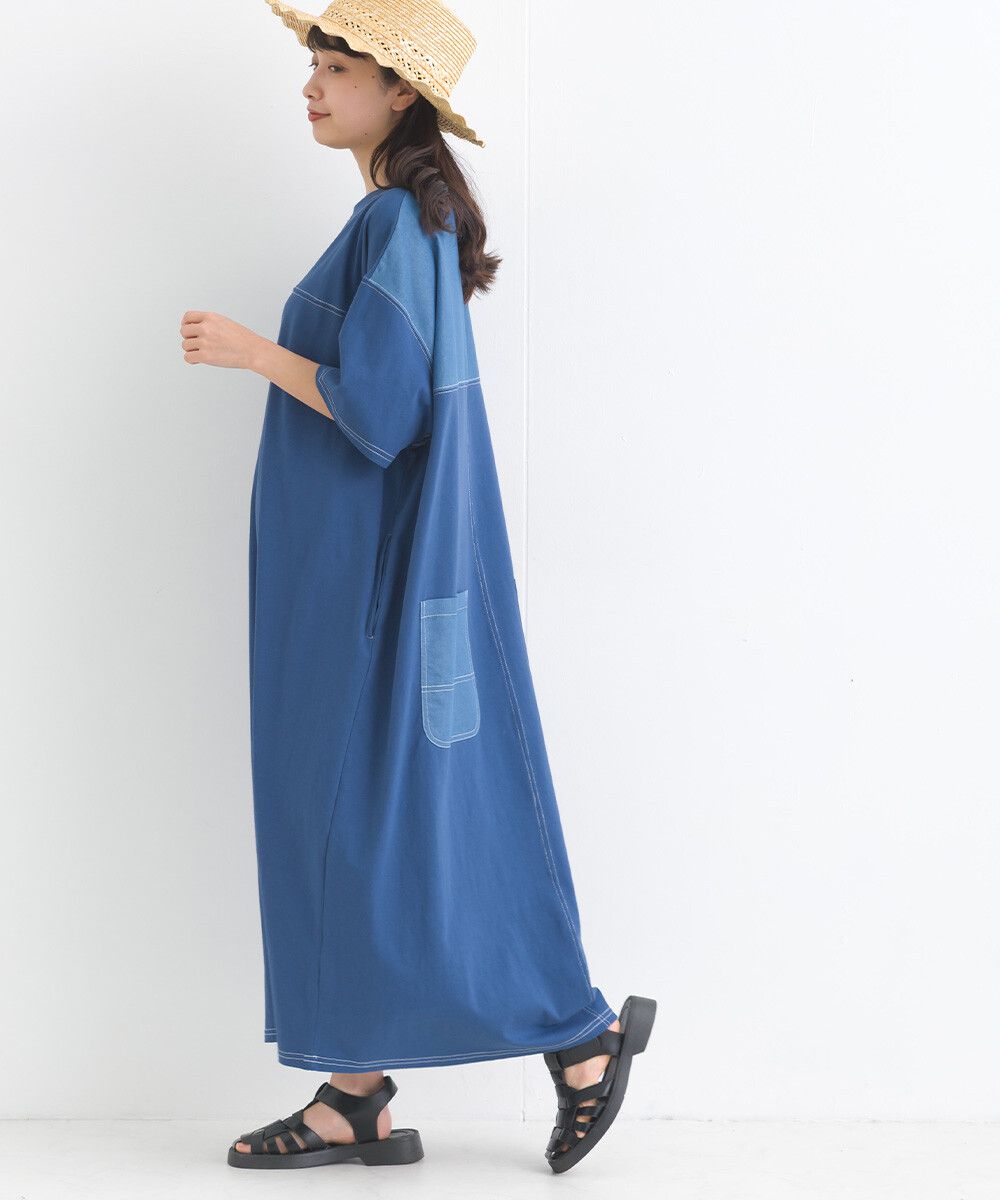 16支厚磅混丹寧短袖洋裝