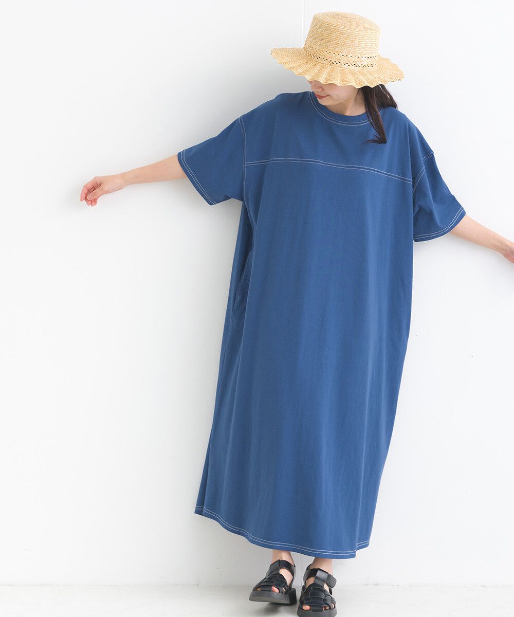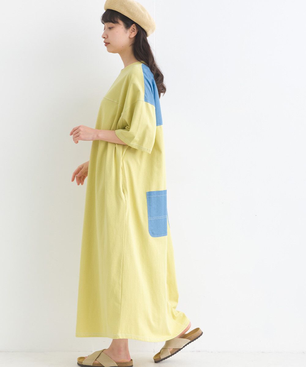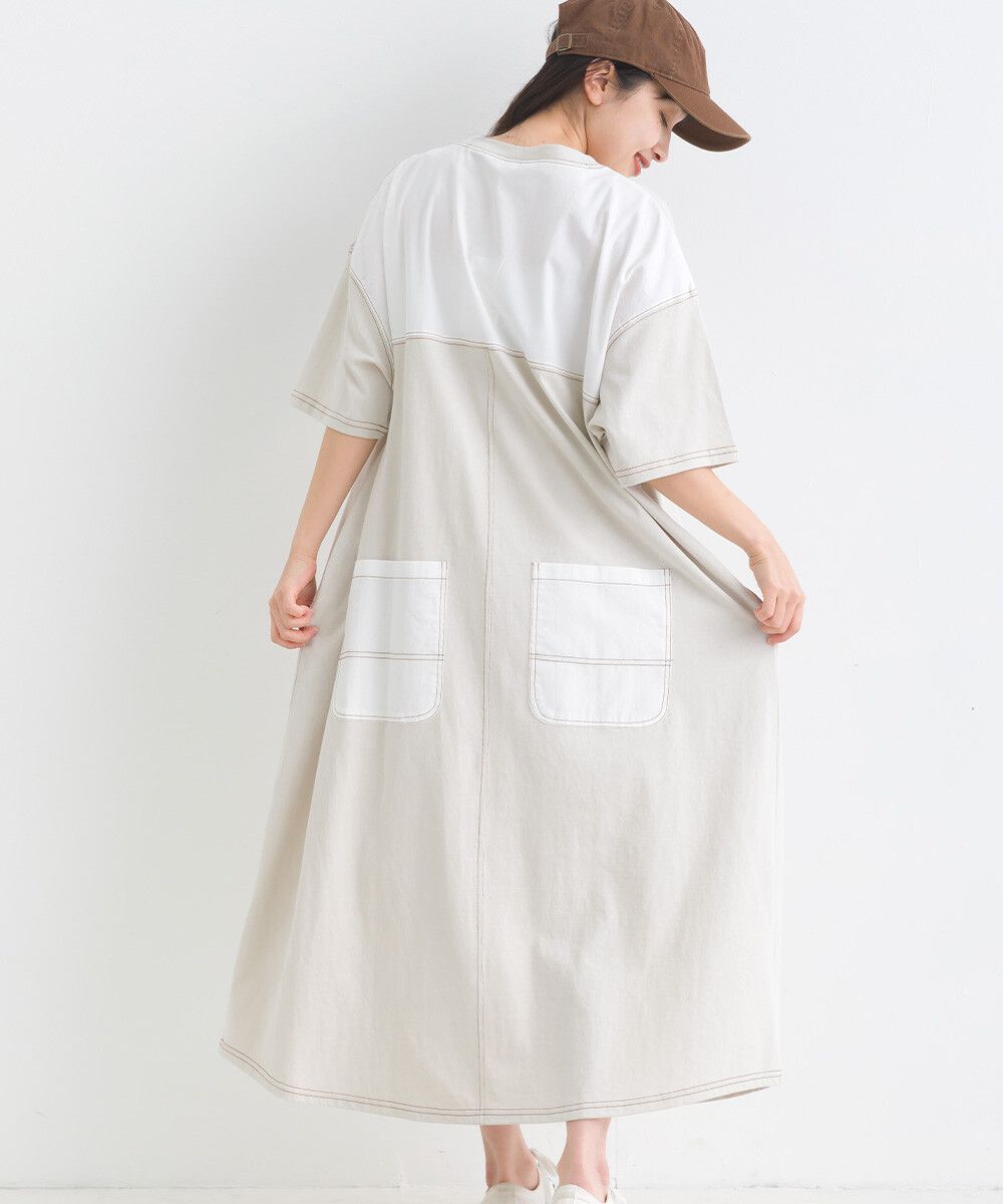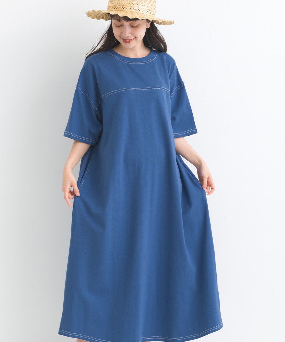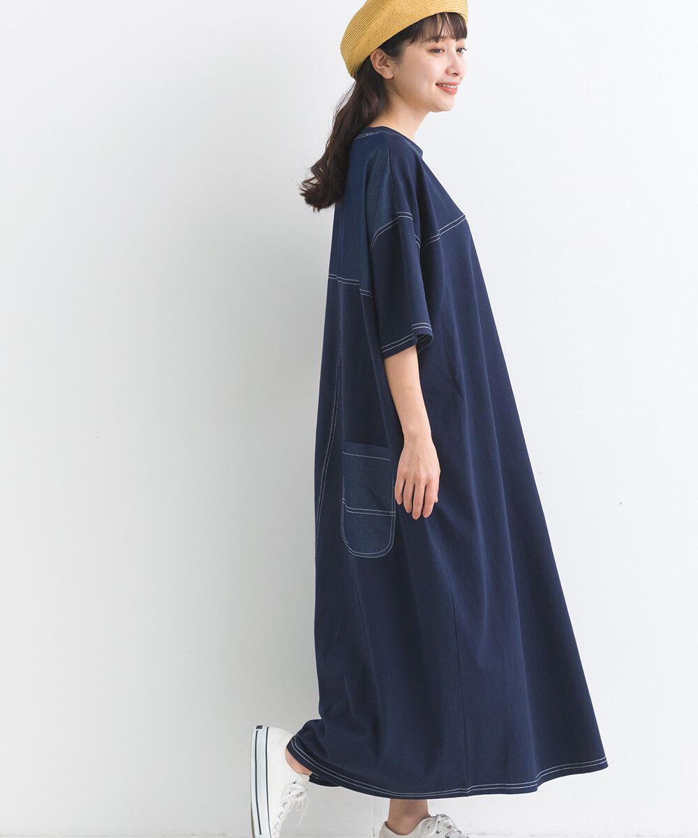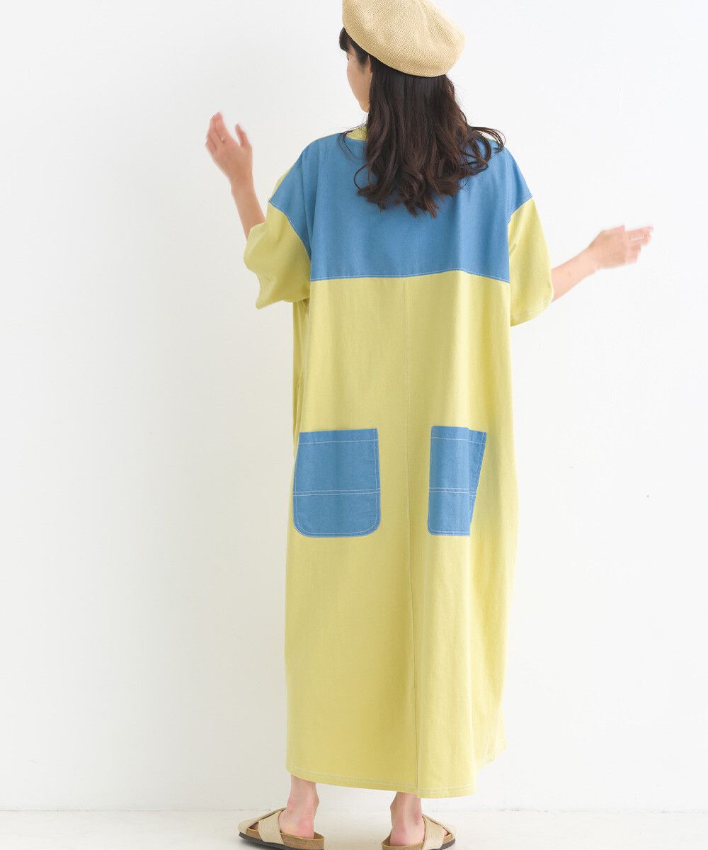 16支厚磅混丹寧短袖洋裝