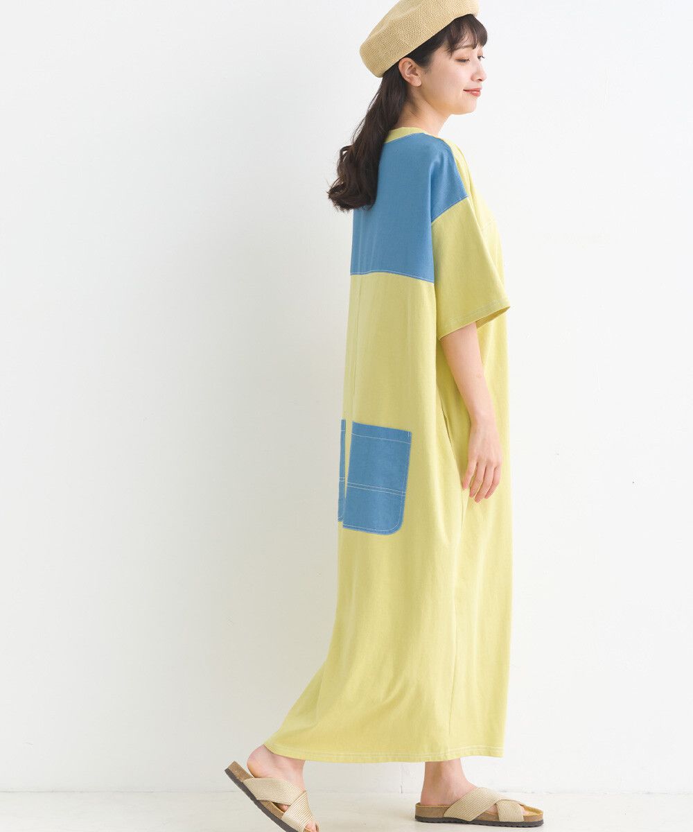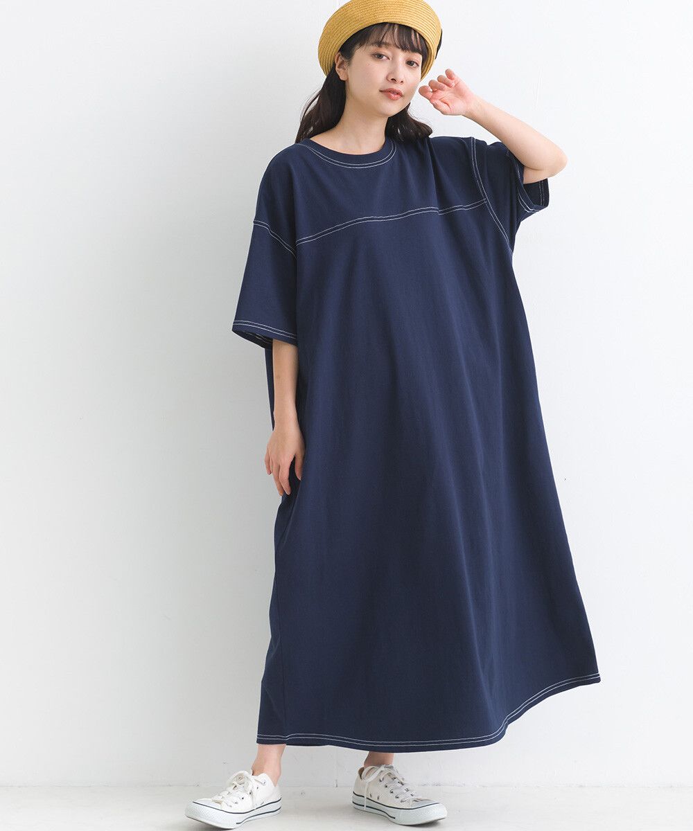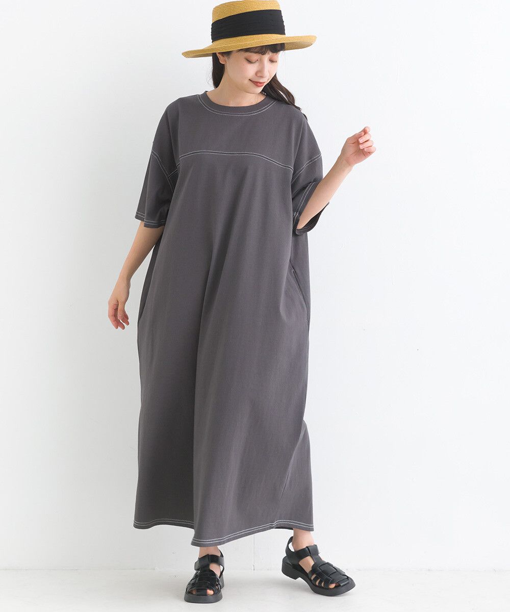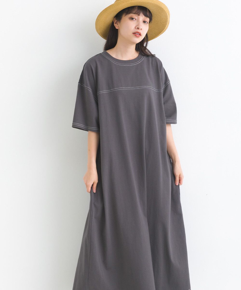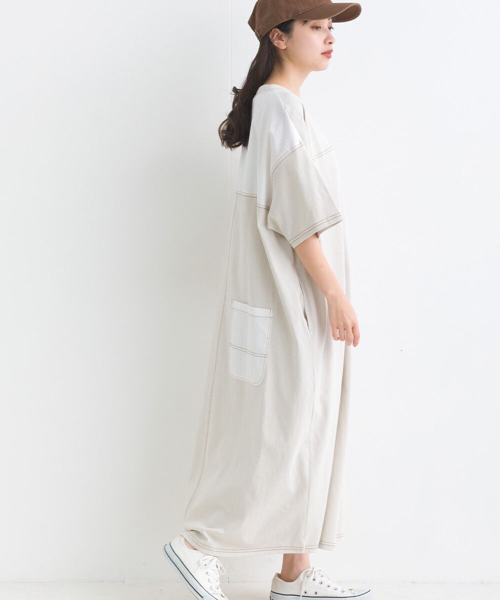 16支厚磅混丹寧短袖洋裝