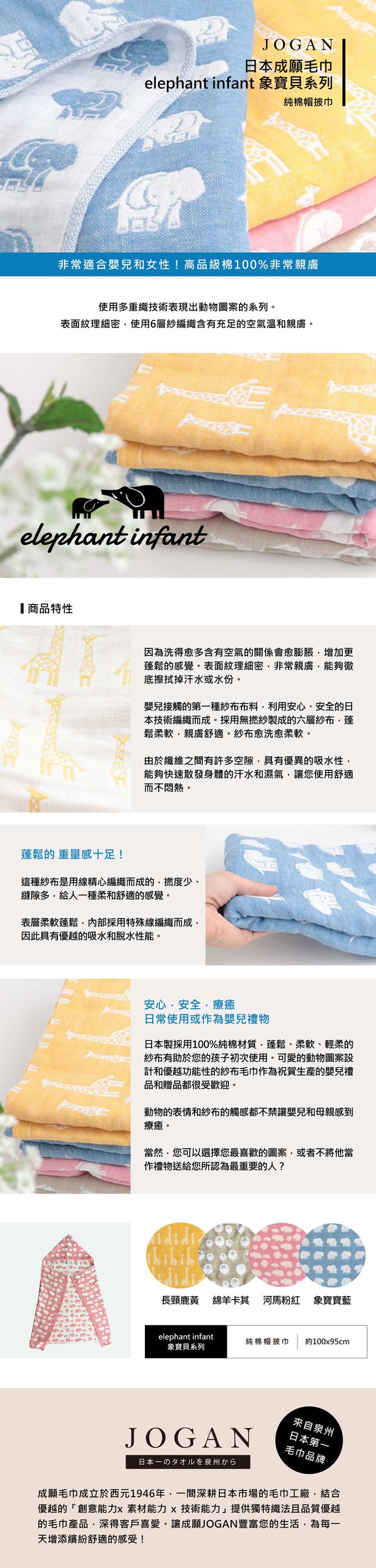 JOGAN日本成願 - elephant infant 象寶貝系列 純棉帽披巾