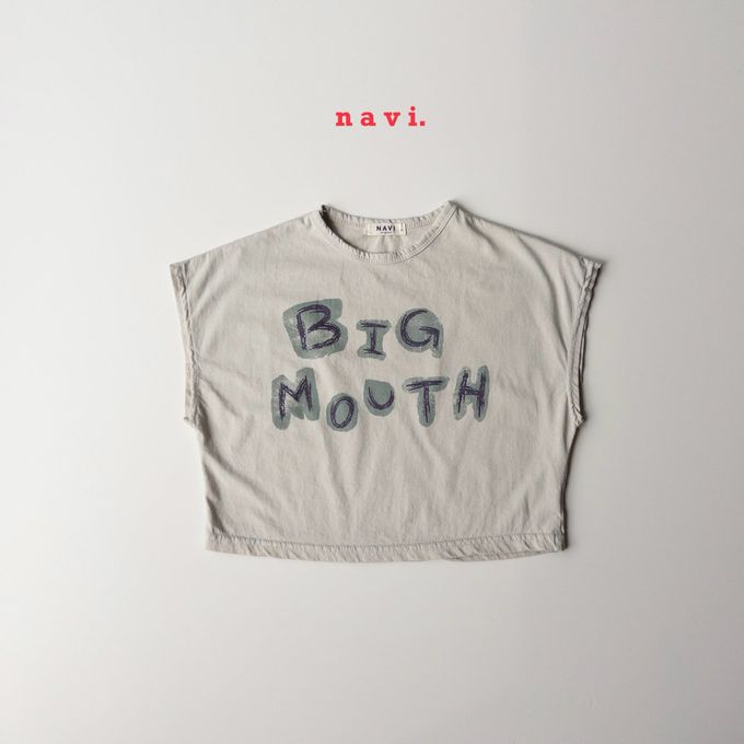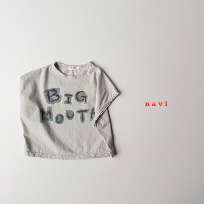 韓國 THE NAVi - 大嘴巴落肩短袖上衣-白灰