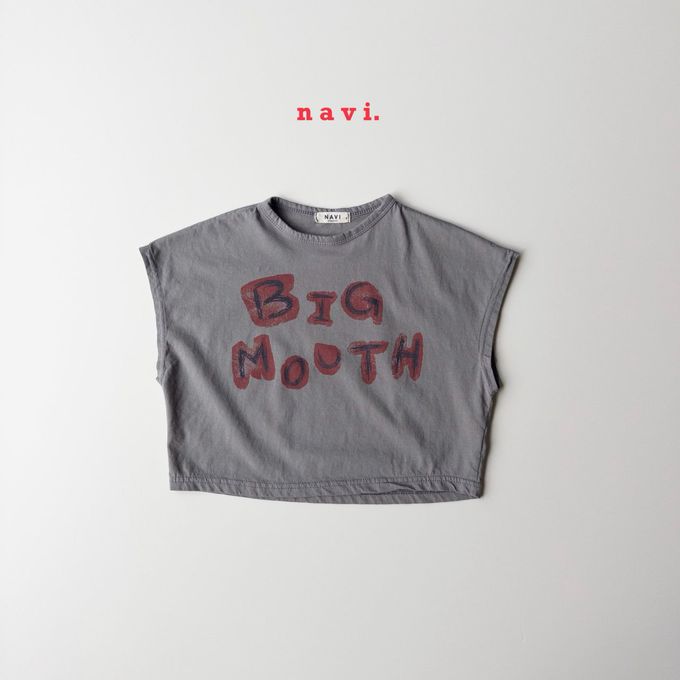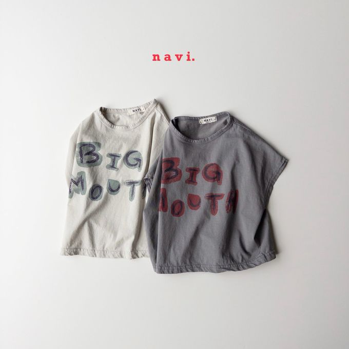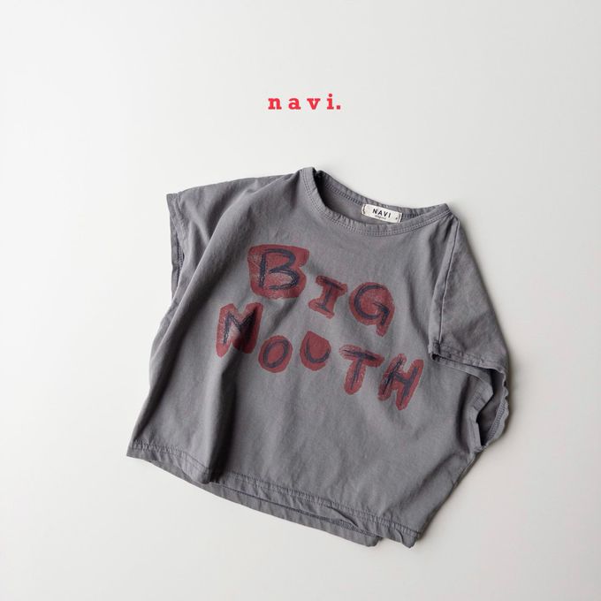 韓國 THE NAVi - 大嘴巴落肩短袖上衣-墨灰