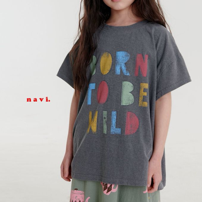 韓國 THE NAVi - 蠟筆塗鴉字印短袖上衣-深灰