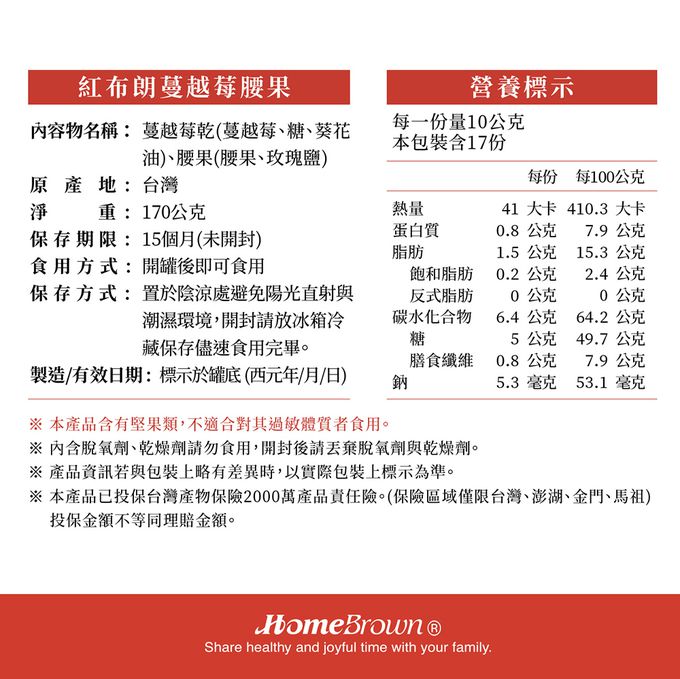 過敏原:本產品含有堅果類,不適合對其過敏體質者食用