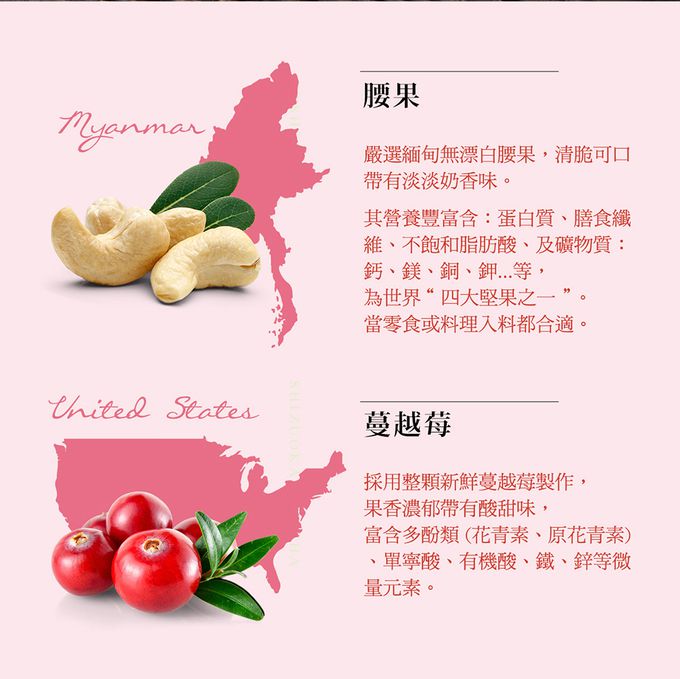 品名:莓果堅果美味組 (蔓越莓乾顆粒X2+蔓越莓腰果X1)