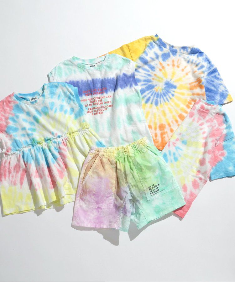 日本 BREEZE - 夏日彩色暈染短褲(4分丈)-藍紅系