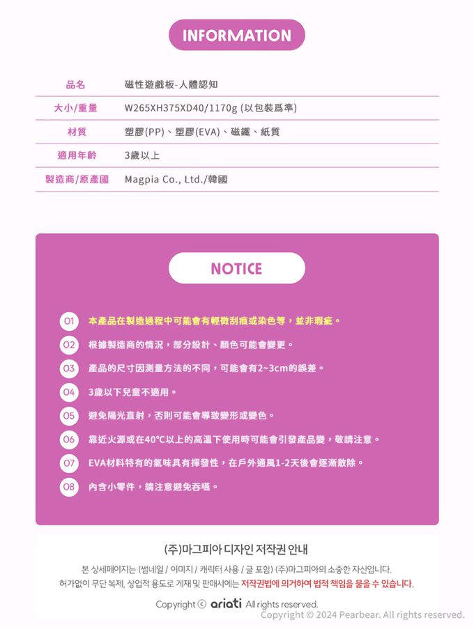品名:磁性遊戲板-人體認知