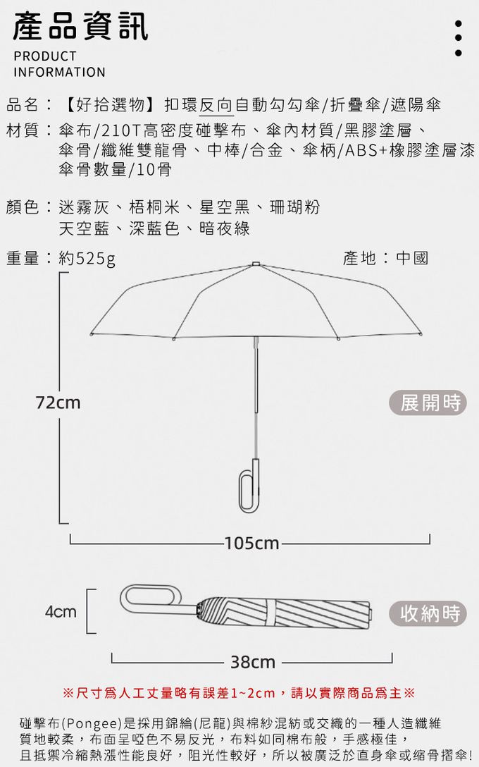 品名:扣環反向自動勾勾傘/折疊傘/遮陽傘