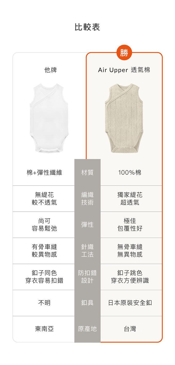 讓肌膚不再為悶熱所困,讓寶寶每一天都在舒適圈!Air Upper透氣棉系列以「高空衣」為別名,無論季節更迭,高空衣都能讓肌膚擁抱最單純的棉柔呵護。