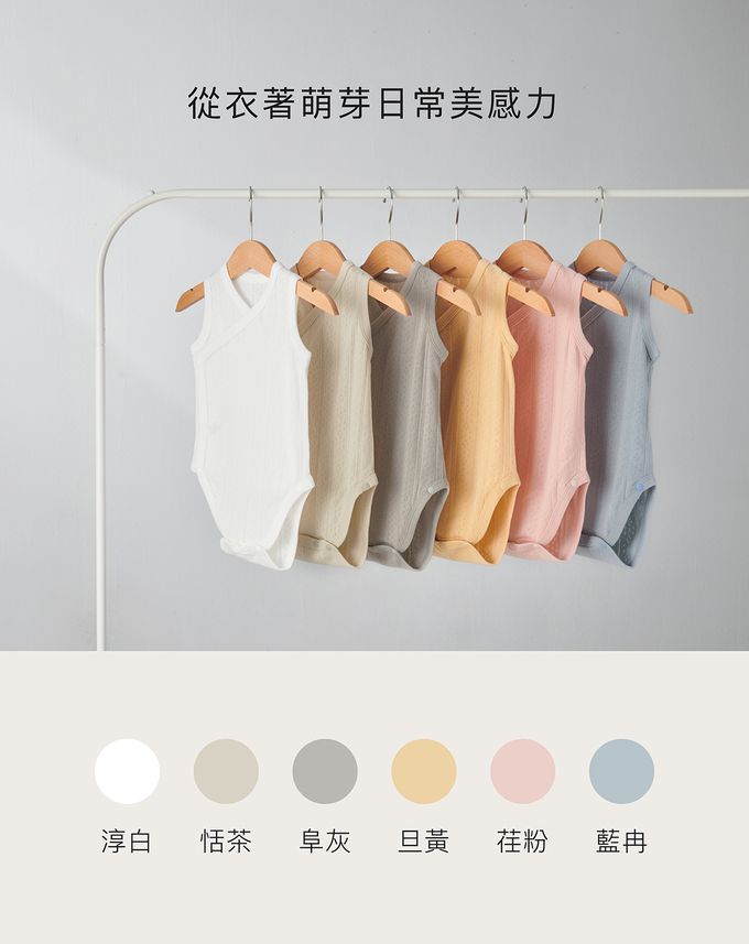 -新生兒親膚衣物(嬰幼兒包巾與背巾、包屁衣、學習褲、紗布衣等)。