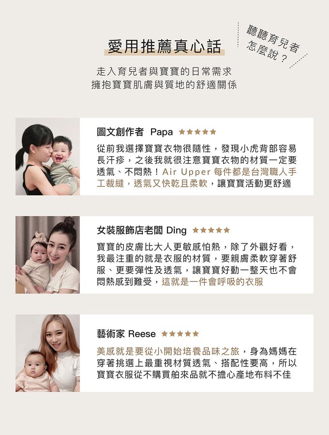 讓肌膚不再為悶熱所困,讓寶寶每一天都在舒適圈!Air Upper透氣棉系列以「高空衣」為別名,無論季節更迭,高空衣都能讓肌膚擁抱最單純的棉柔呵護。