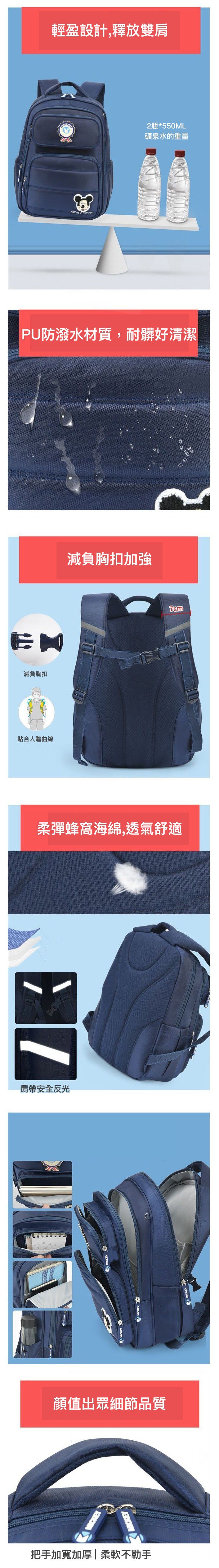 大容量多隔層書包-卡通人物米奇勳章-黑色-29x18x40cm