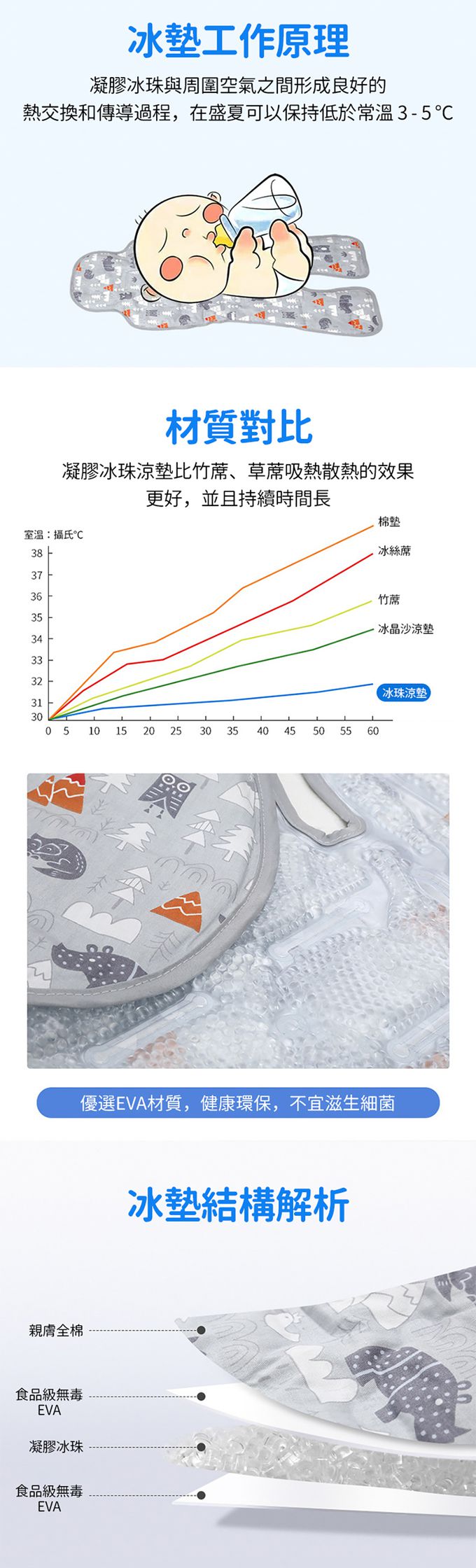 材質:正面:100%純棉/背面:EVA/填充物:高分子凝膠冰珠(聚丙烯酸鈉)