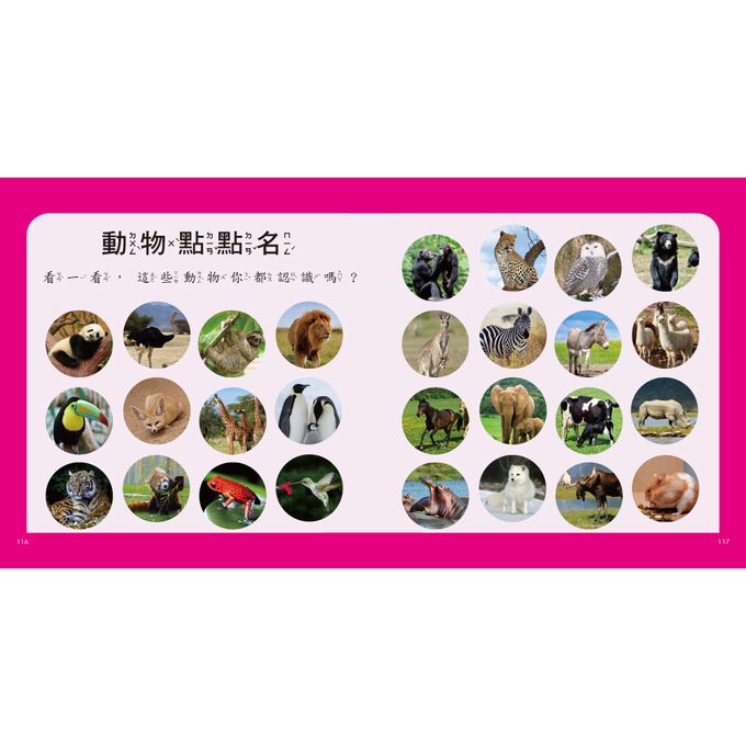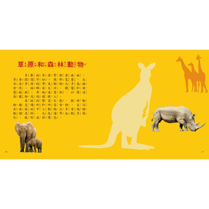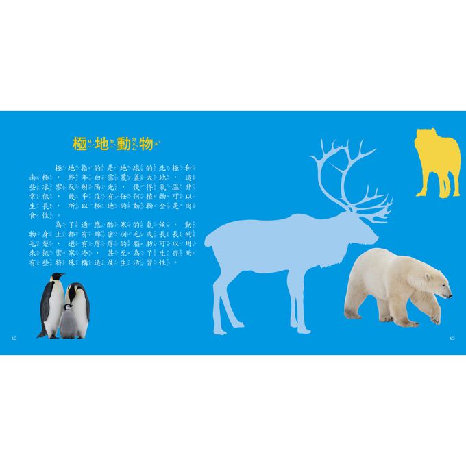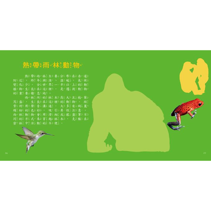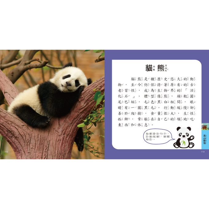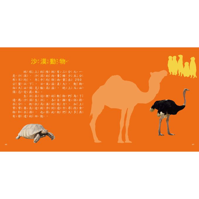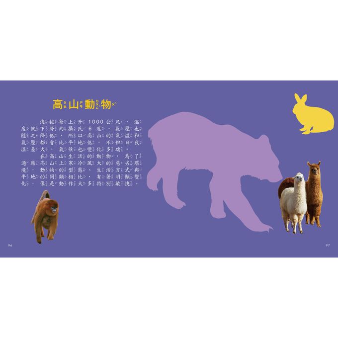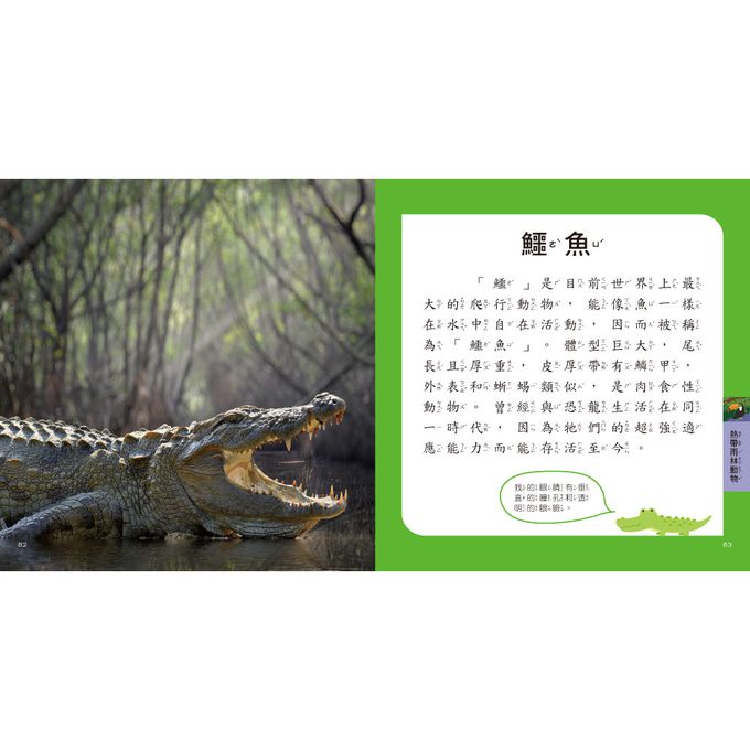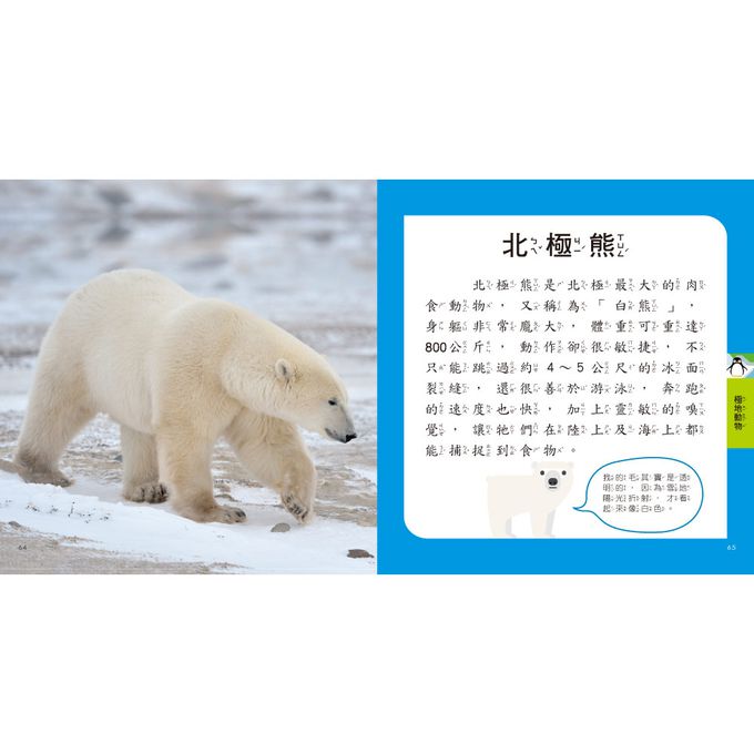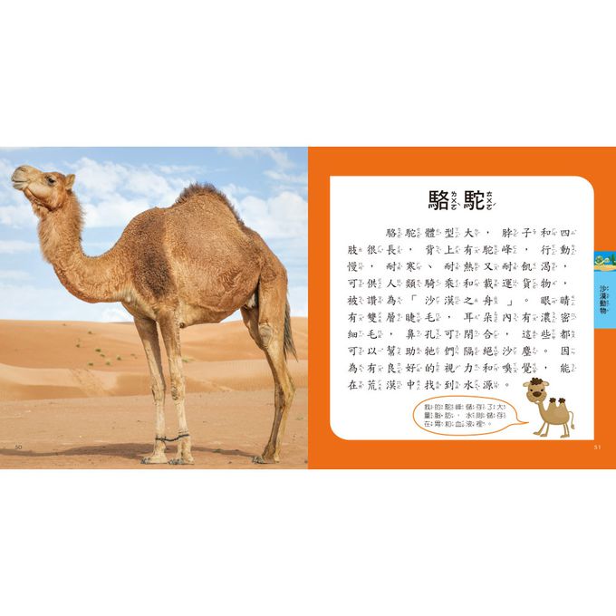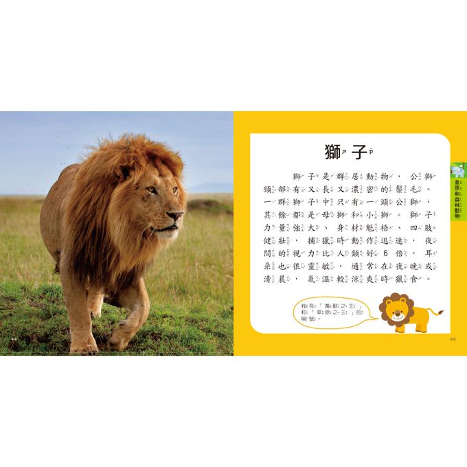 圖片旁邊配上有趣、知識性的介紹,以第一人稱介紹動物,引起孩子興趣。