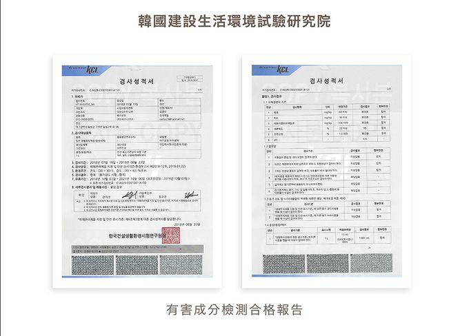 所有成分皆通過韓國建設生活環境研究院測試