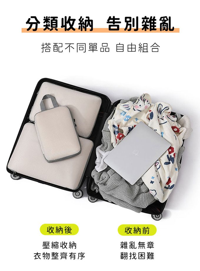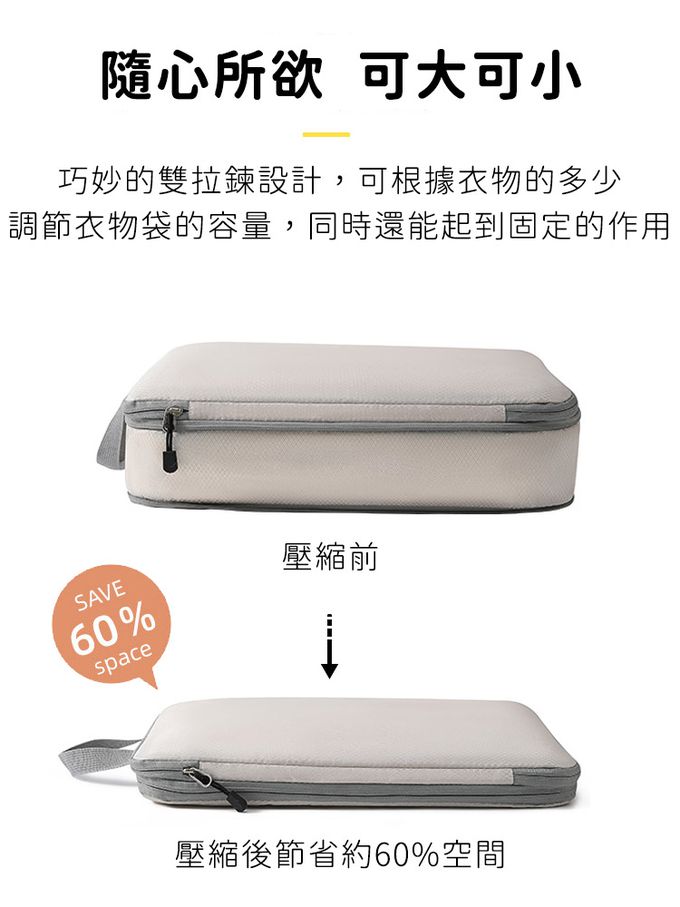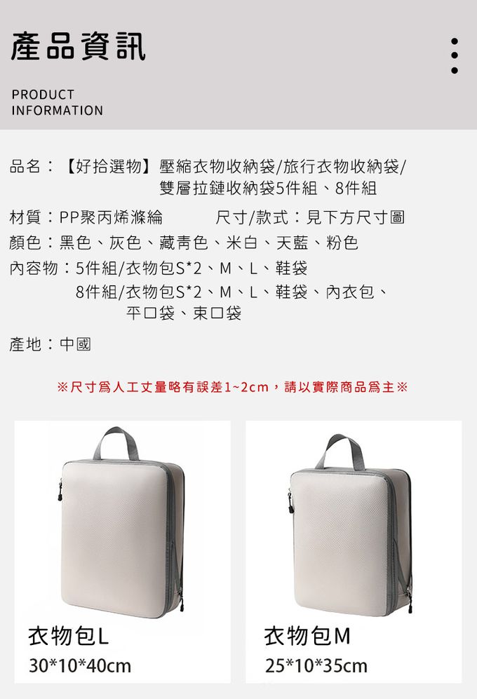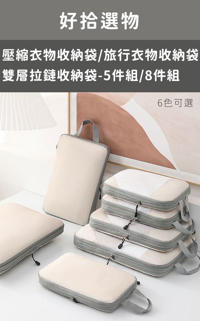 商品名稱:壓縮衣物收納袋/旅行衣物收納袋/雙層拉鏈收納袋8件組