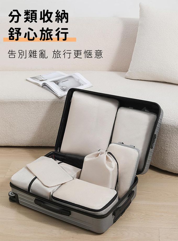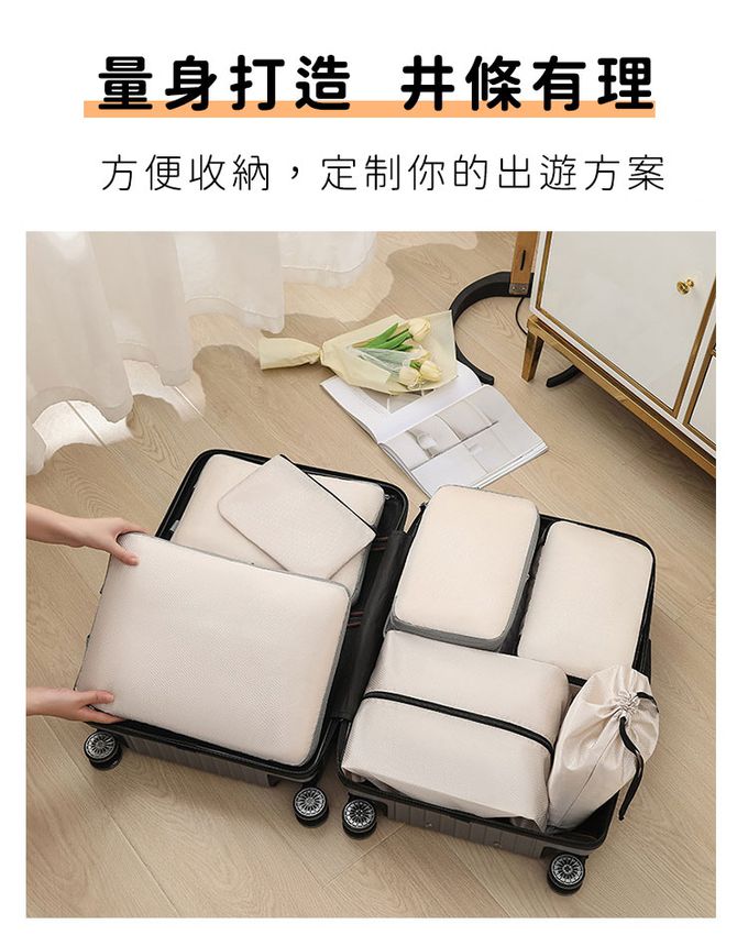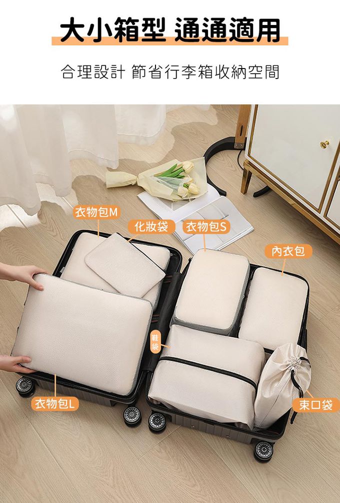 8件組:衣物包S*2、M、L、鞋袋、內衣包、平口袋、束口袋