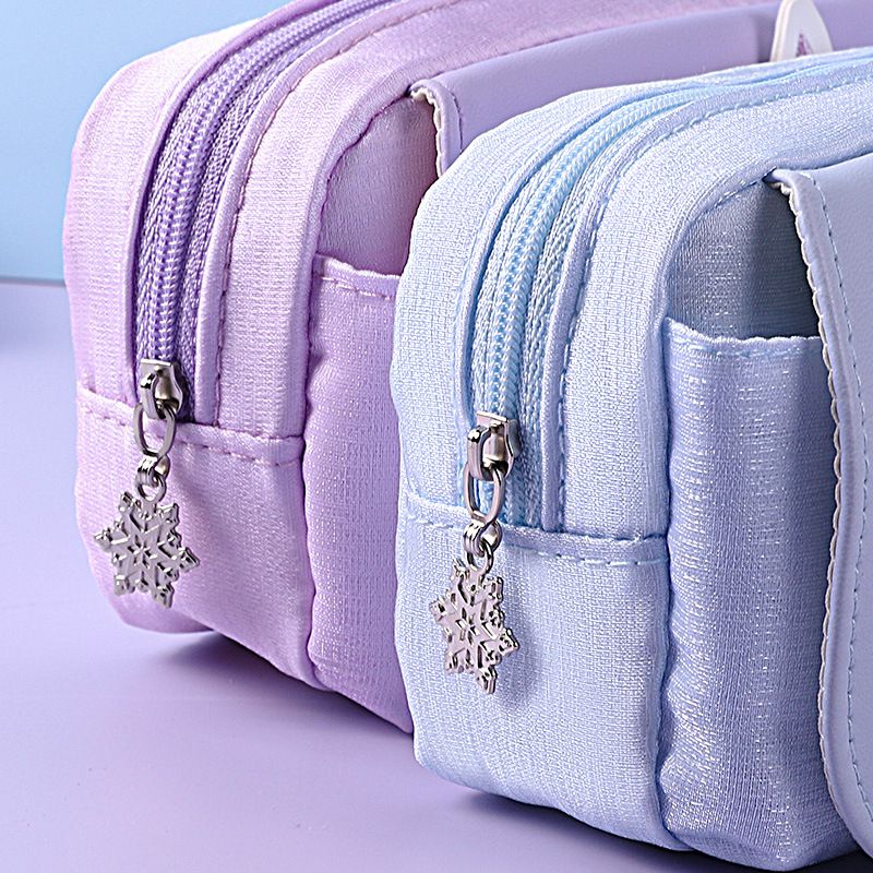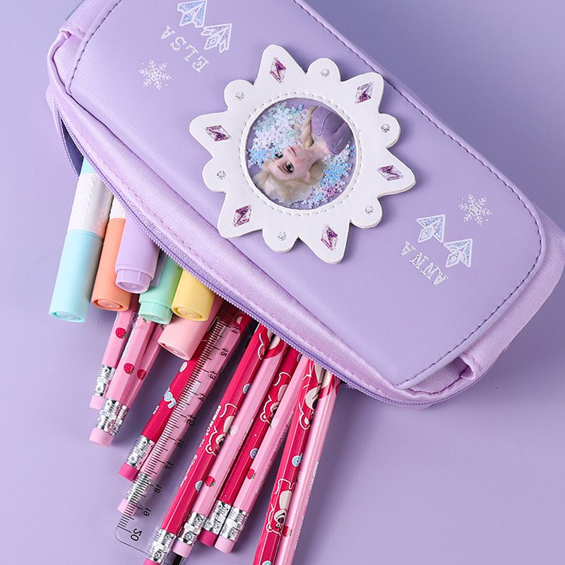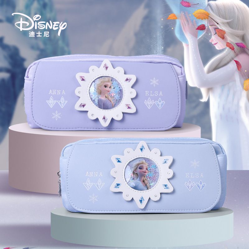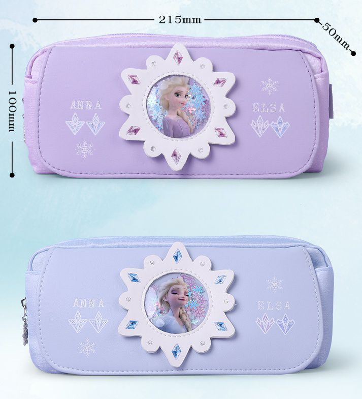 大容量耐磨防水鉛筆盒-卡通人物艾莎-淺藍色