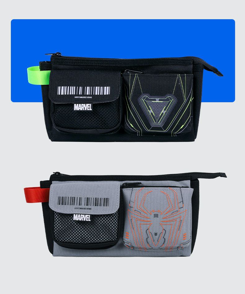 多隔層防刮耐磨鉛筆盒/筆袋-卡通人物蜘蛛人-灰色