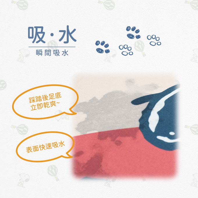 ◎瞬間吸水 踩踏後足底水分立即乾爽
