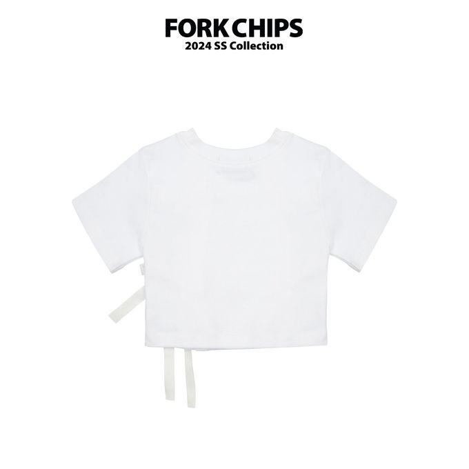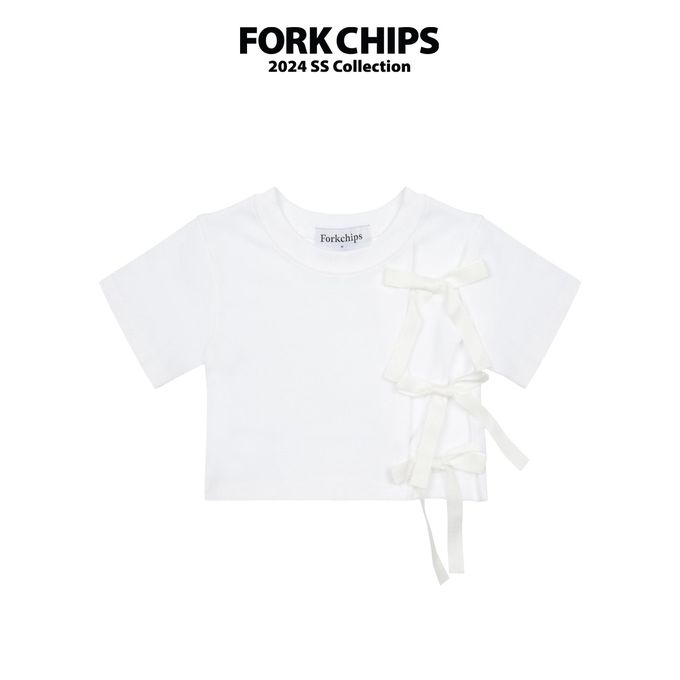韓國 FORK CHIPS - 立體蝴蝶綁結短袖上衣-白