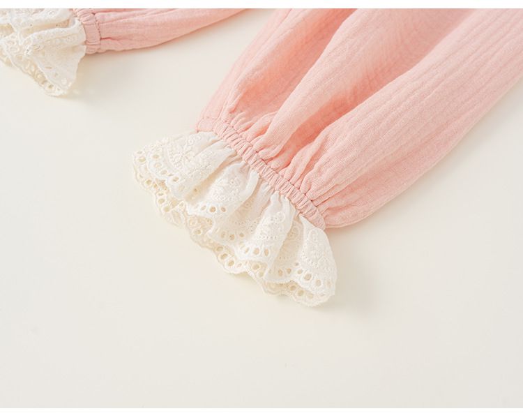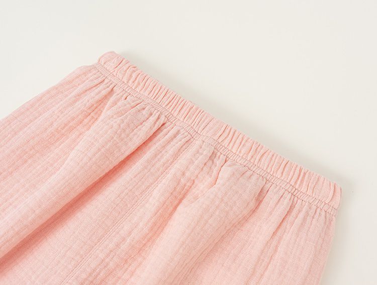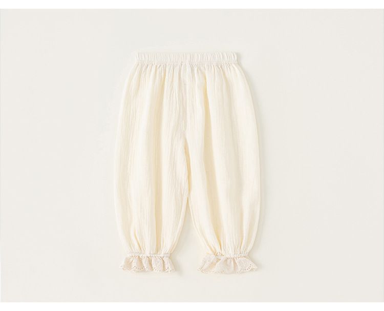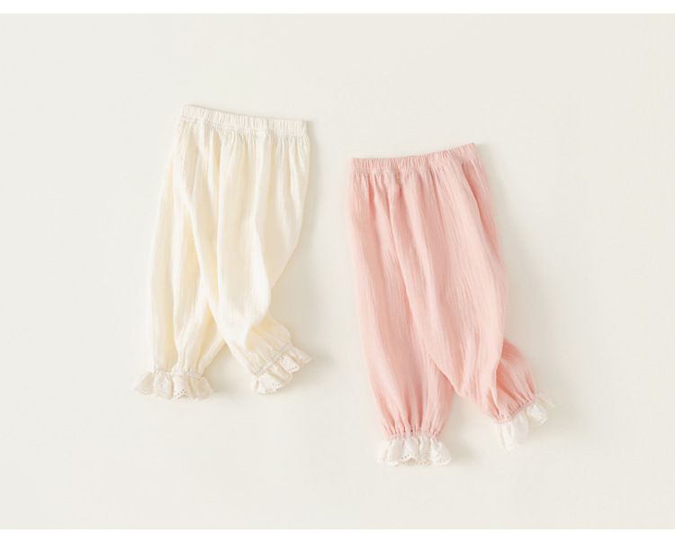 純棉雙層紗防蚊褲/空調褲-蕾絲褲腳-粉色