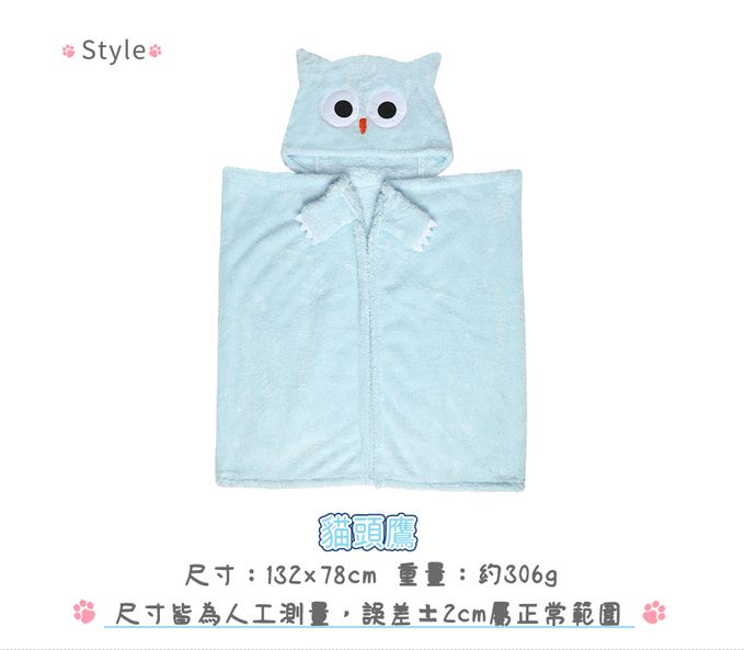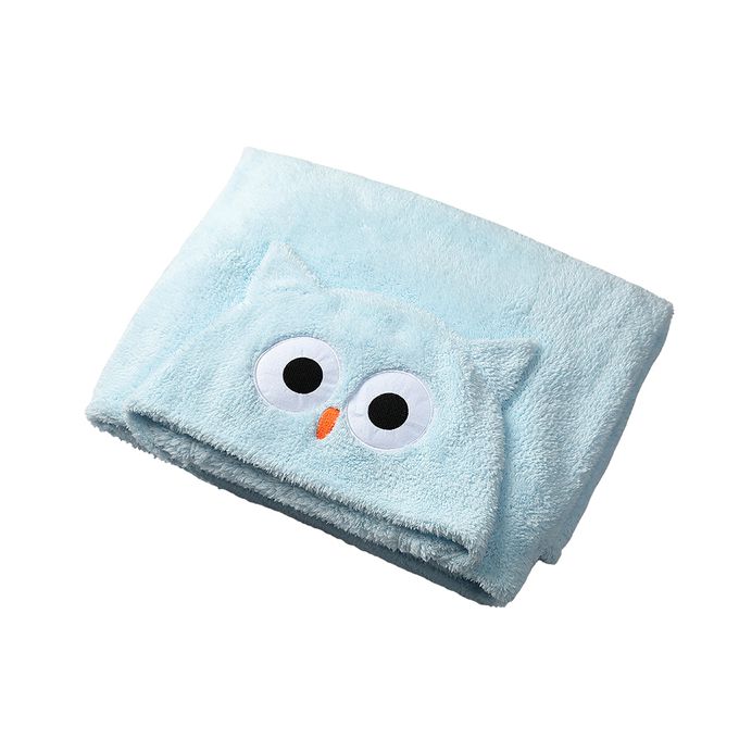 【產品名稱】可愛動物造型超細纖維速乾兒童連帽罩袍_貓頭鷹(附提袋)