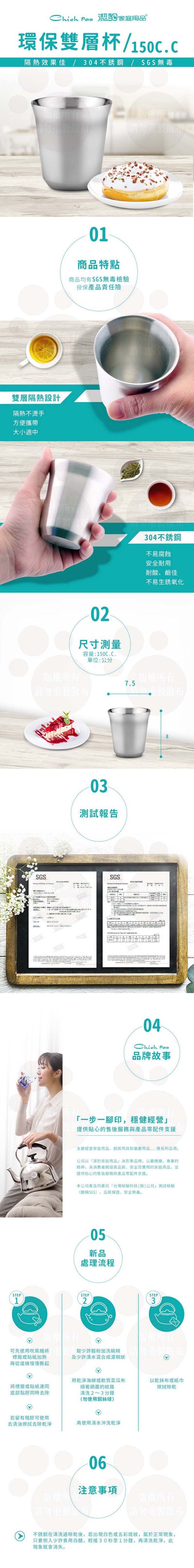 康潔 304不銹鋼環保雙層隔熱杯 (7.5CM)-150CC